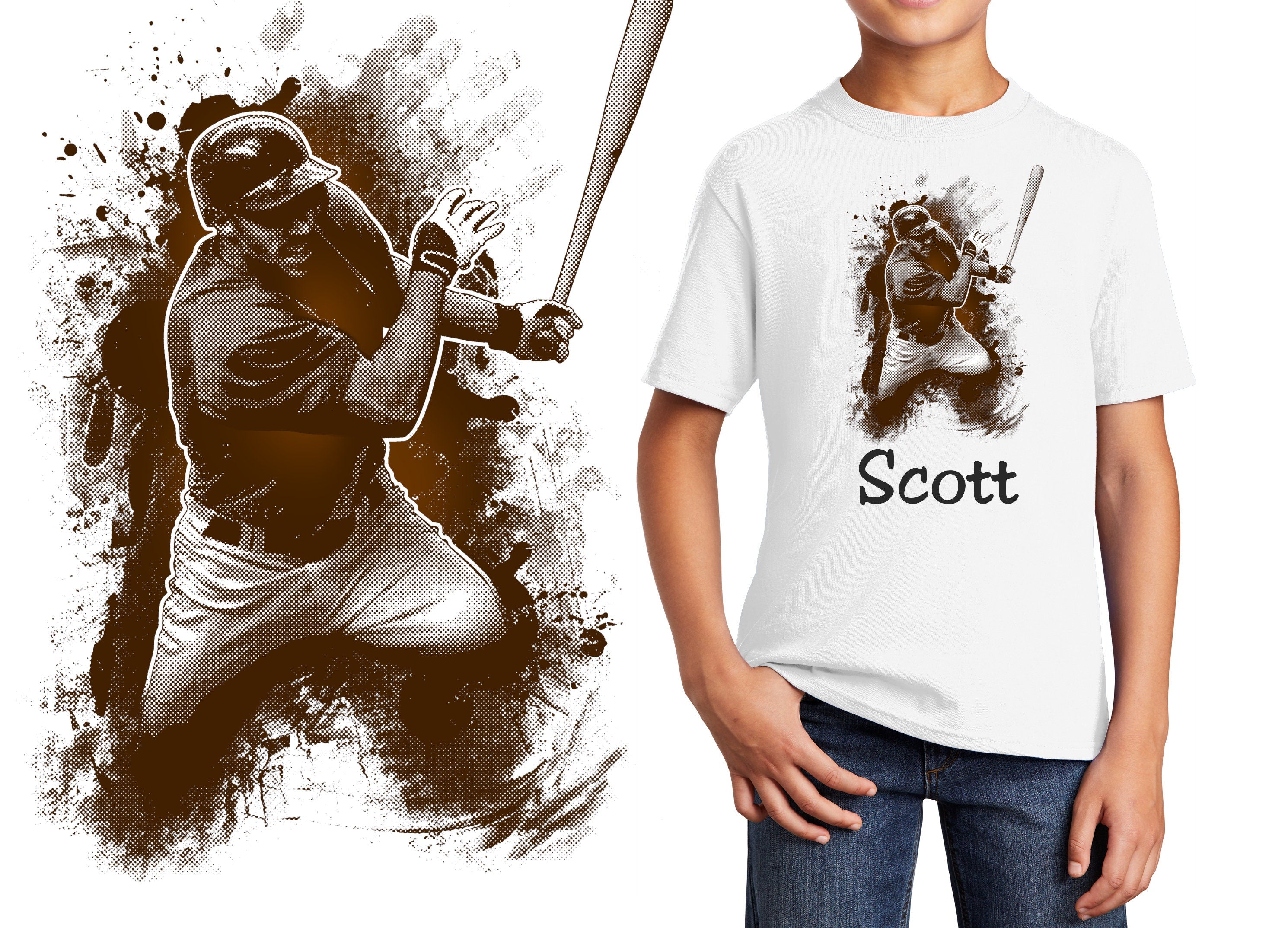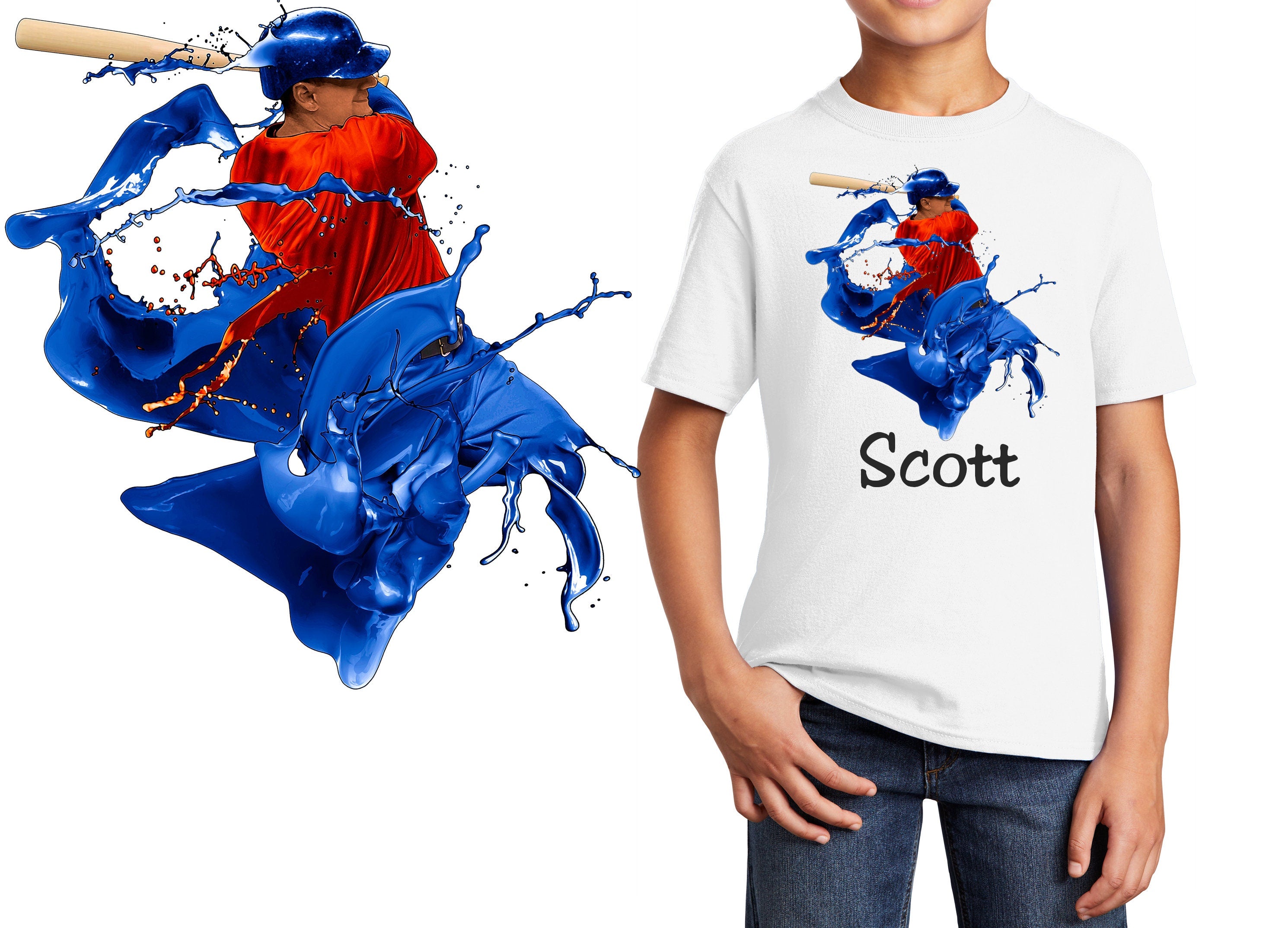 Personalized Kids T-Shirt Baseball Splash Design, T-Shirt, Colorful, Cotton, Low Price Inexpensive Tee Shirt, Student Gift, School Gift