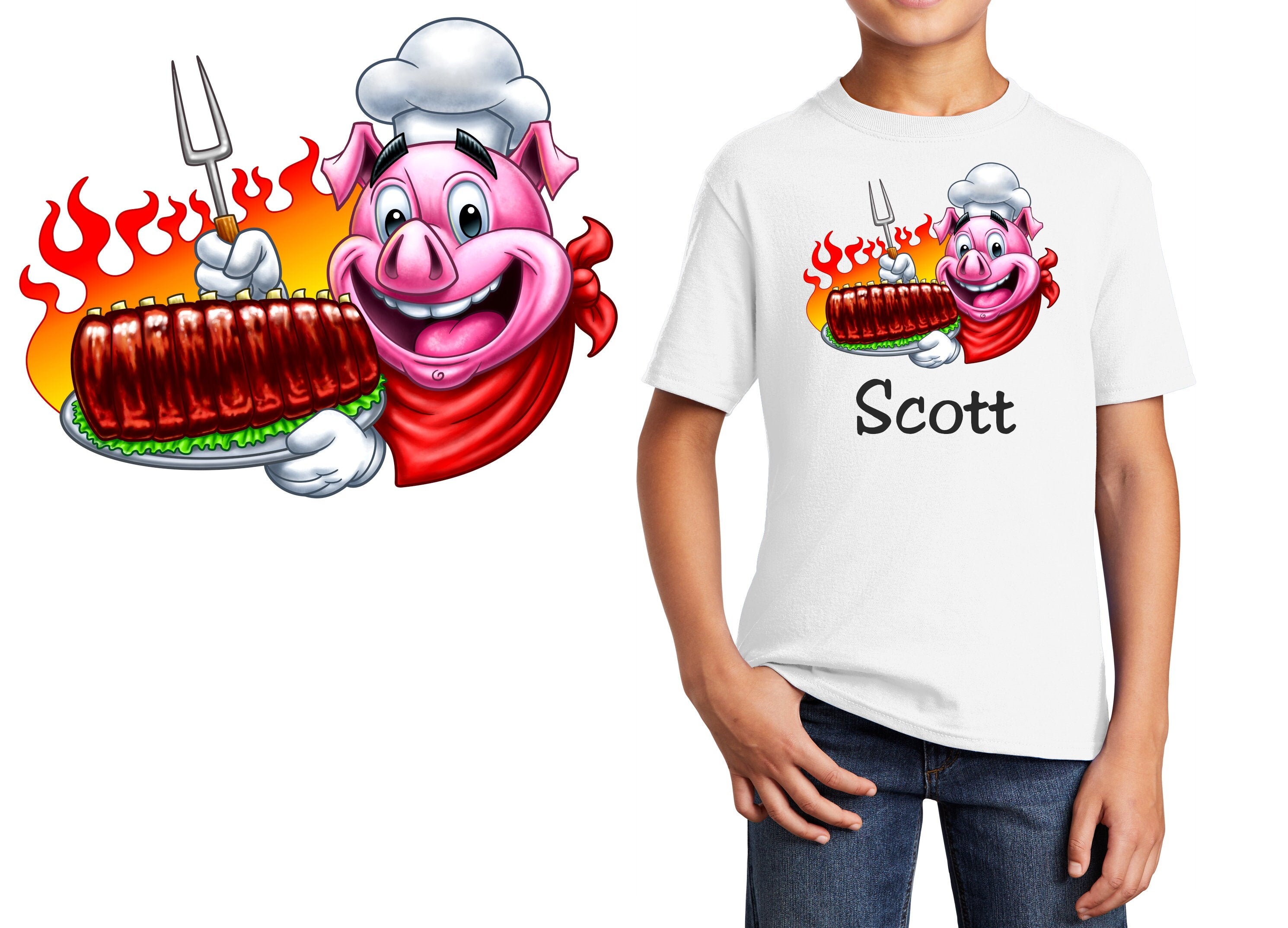 Personalized Kids T-Shirt BBQ Pig Ribs Grille Design, T-Shirt, Colorful, Cotton, Low Price Inexpensive Tee Shirt, Student Gift, School Gift