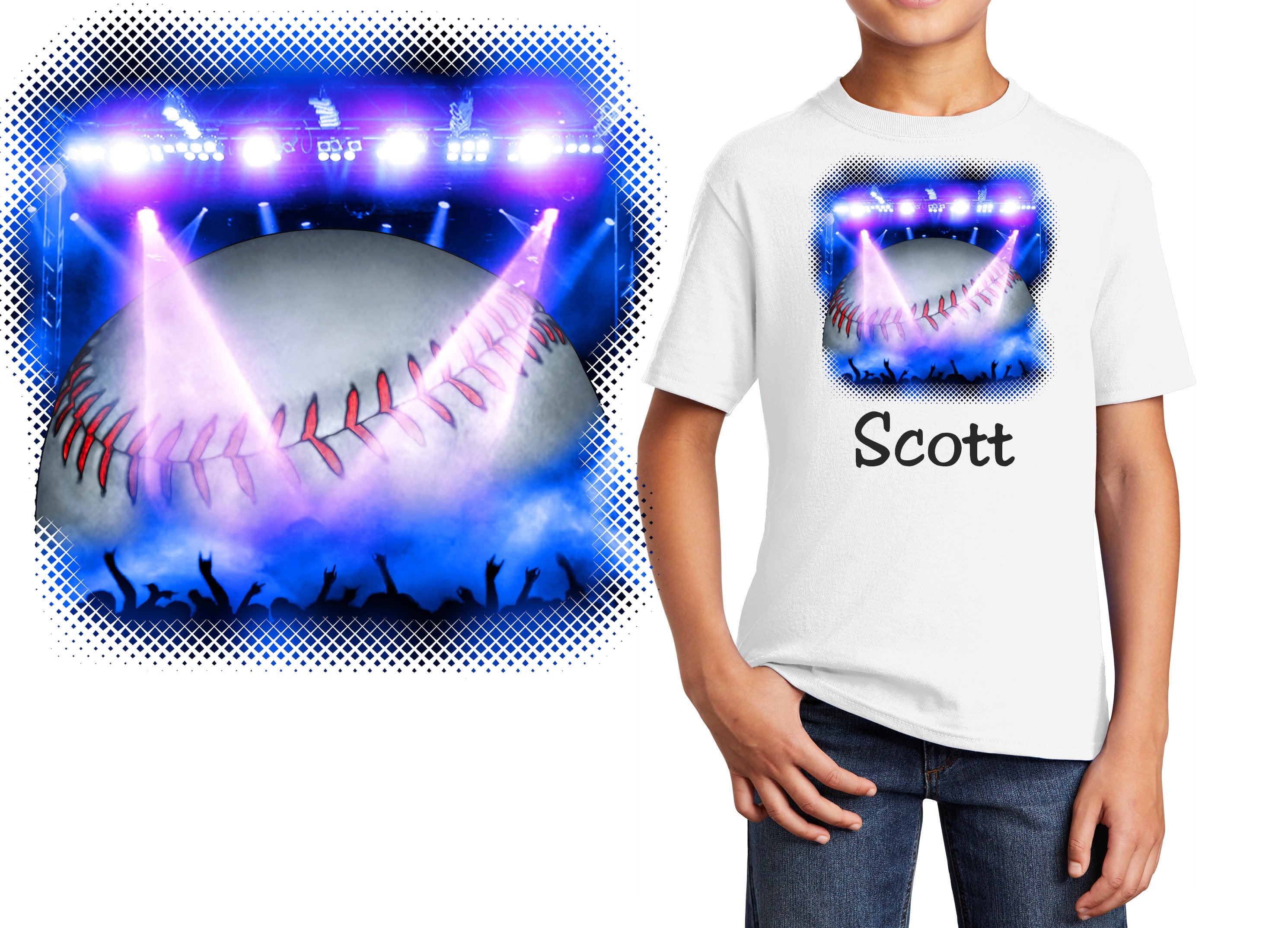 Personalized Kids T-Shirt Baseball Concert Design, T-Shirt, Colorful, Cotton, Low Price Inexpensive Tee Shirt, Student Gift, School Gift