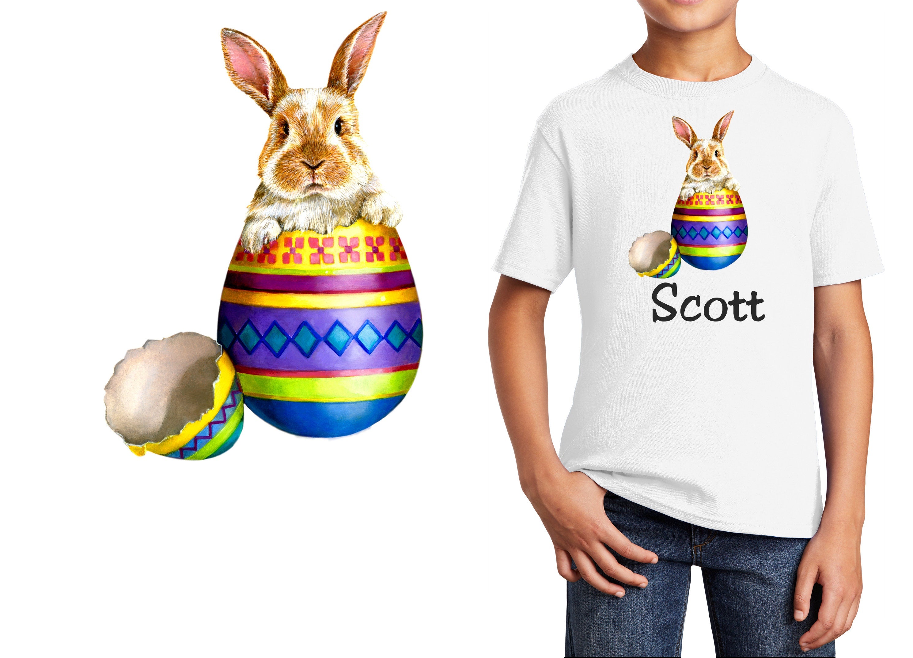 Personalized Kids T-Shirt Easter Bunny in Egg Design, T-Shirt, Colorful, Cotton, Low Price Inexpensive Tee Shirt, Student Gift, Easter Gift