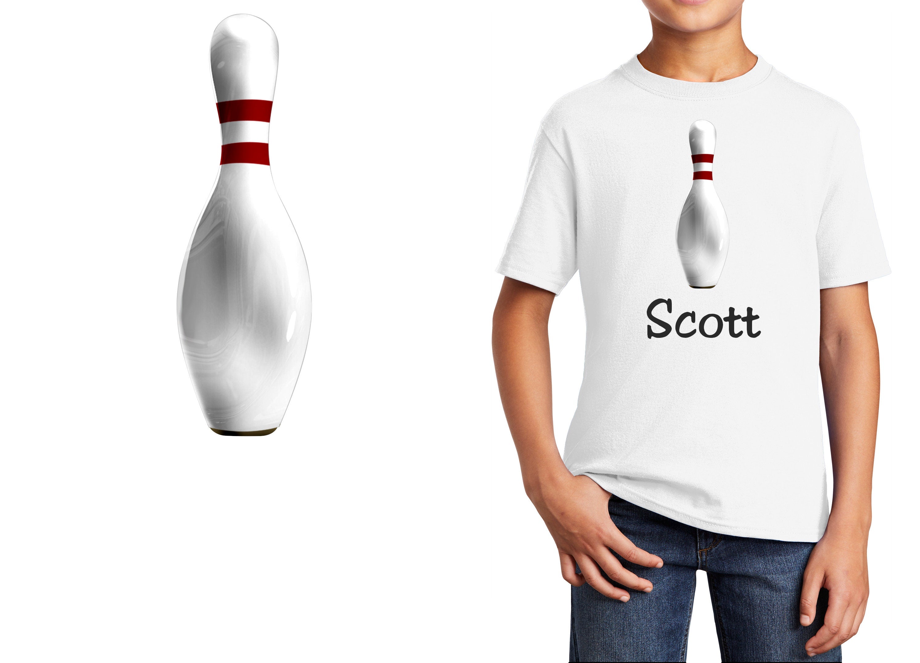 Personalized Kids T-Shirt Bowling Pin Design, T-Shirt, Colorful, Cotton, Low Price Inexpensive Tee Shirt, Student School Gift