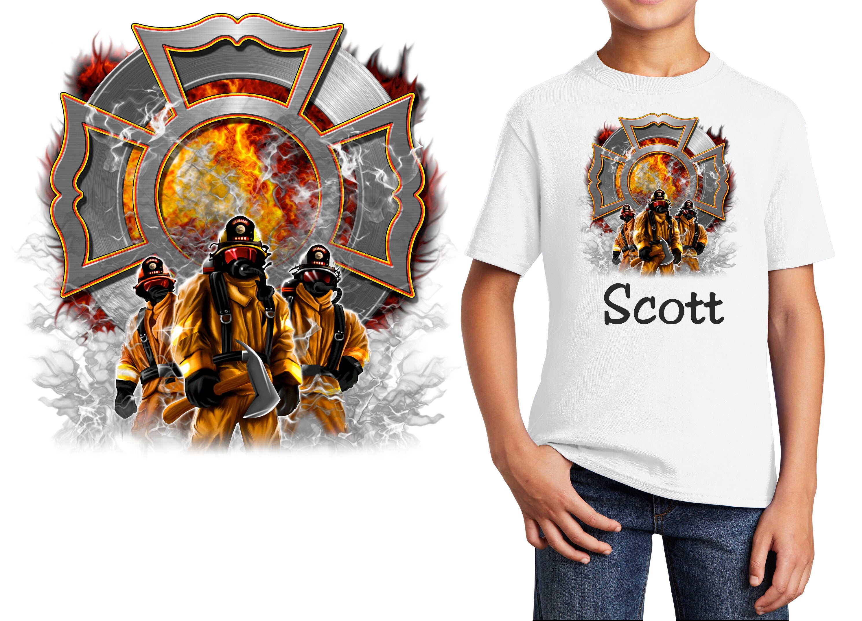 Personalized Kids T-Shirt Firefighter Maltese Cross Design, T-Shirt, Colorful, Cotton, Low Price Inexpensive Tee Shirt, Student School Gift