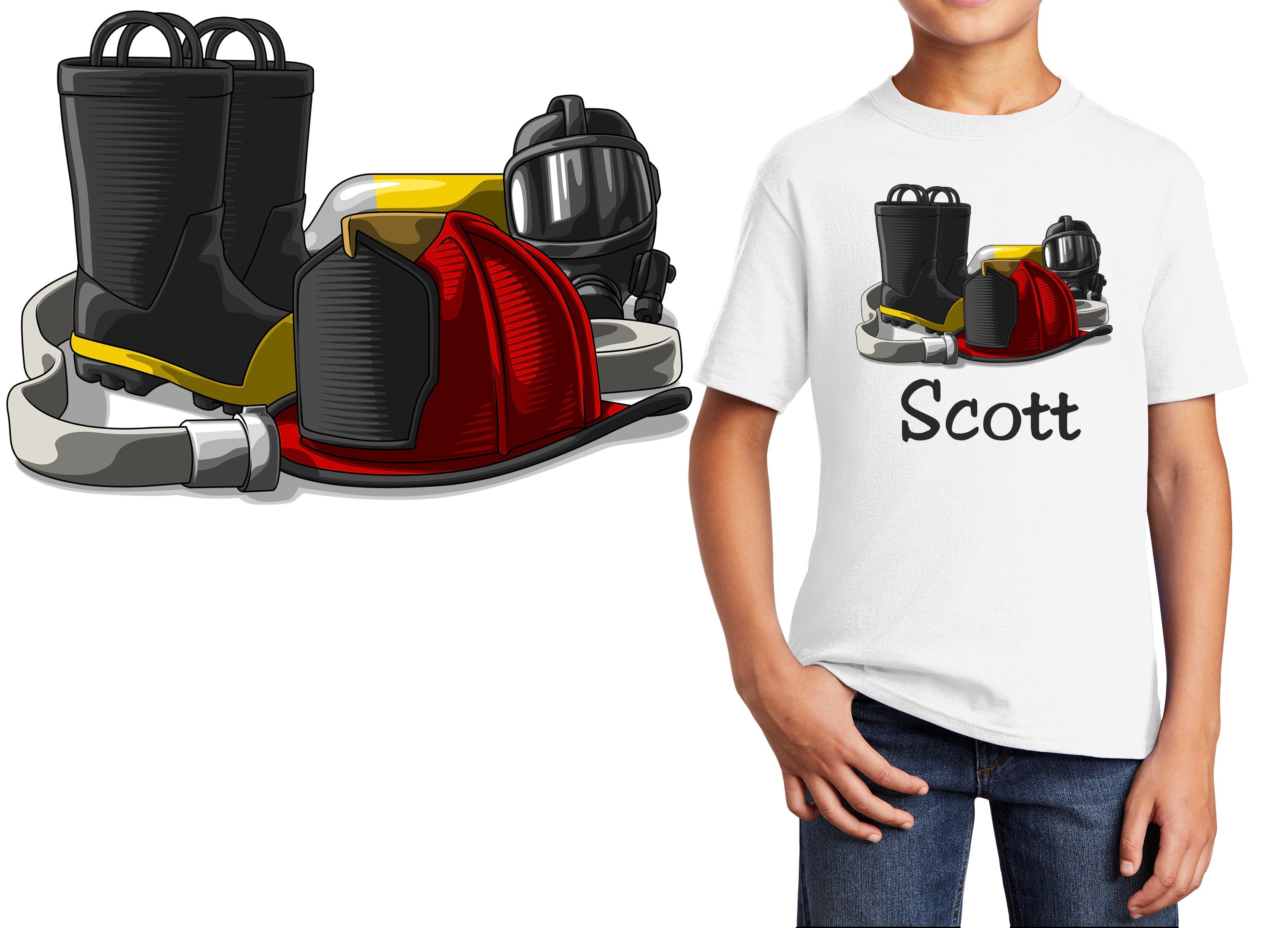 Personalized Kids T-Shirt Firefighter Equipment Design, T-Shirt, Colorful, Cotton, Low Price Inexpensive Tee Shirt, Student School Gift