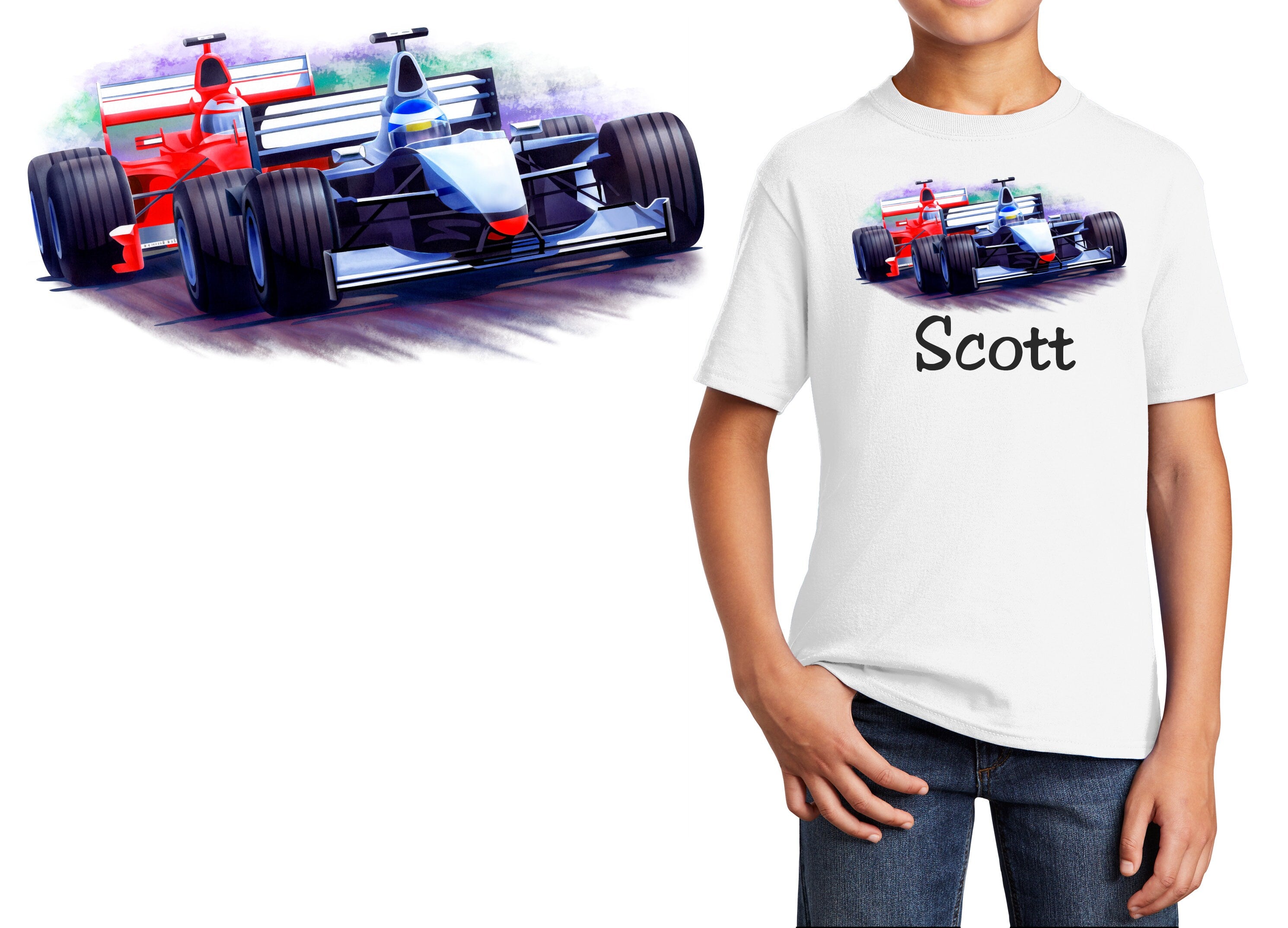 Personalized Kids T-Shirt Race Car Design, T-Shirt, Colorful, Cotton, Low Price Inexpensive Tee Shirt, Kids Gift, Student Gift