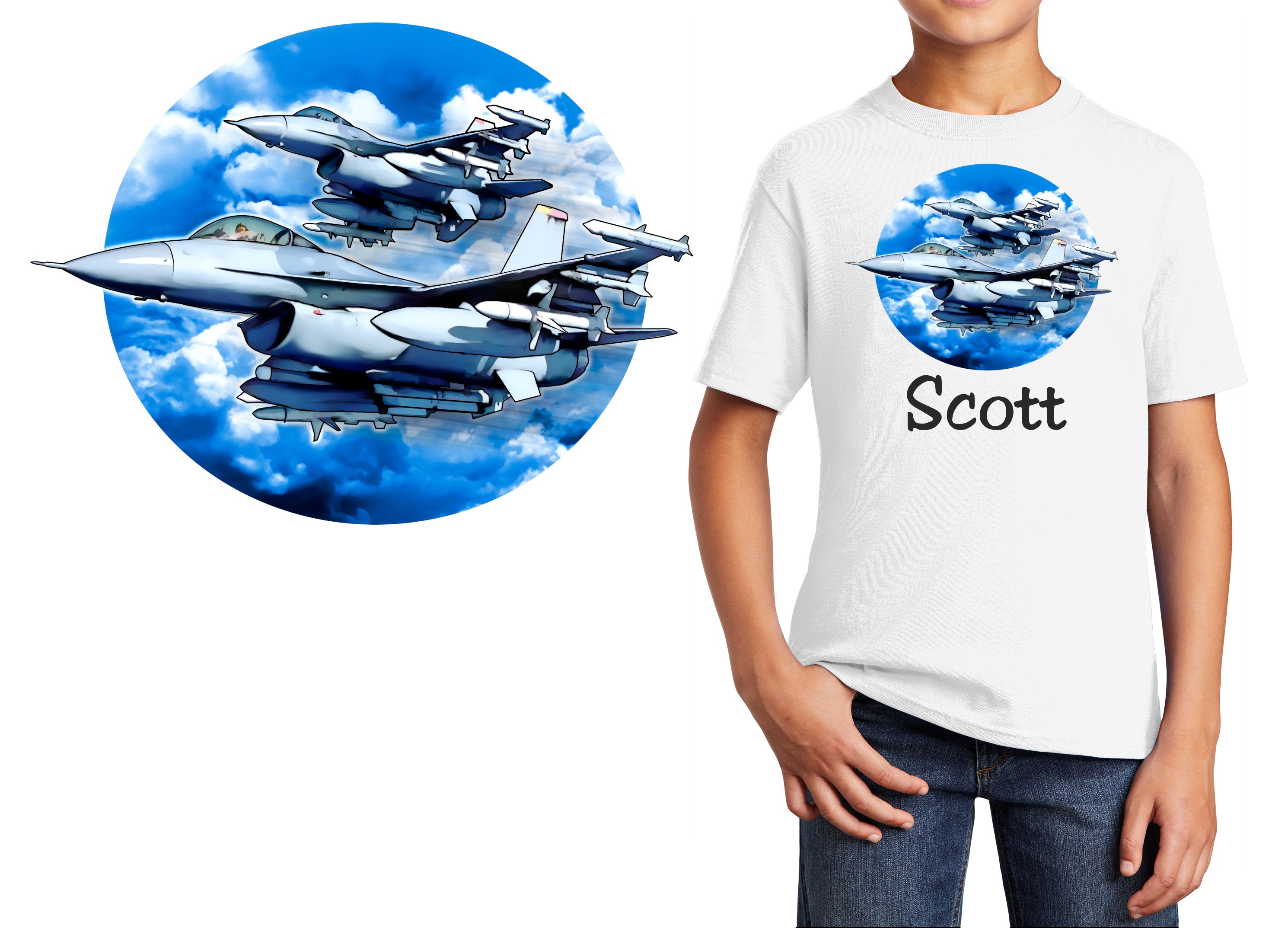Personalized Kids T-Shirt F16 Fighter Jet Plane Design, T-Shirt, Military, Cotton, Low Price Inexpensive Tee Shirt, Kids Gift, Student Gift