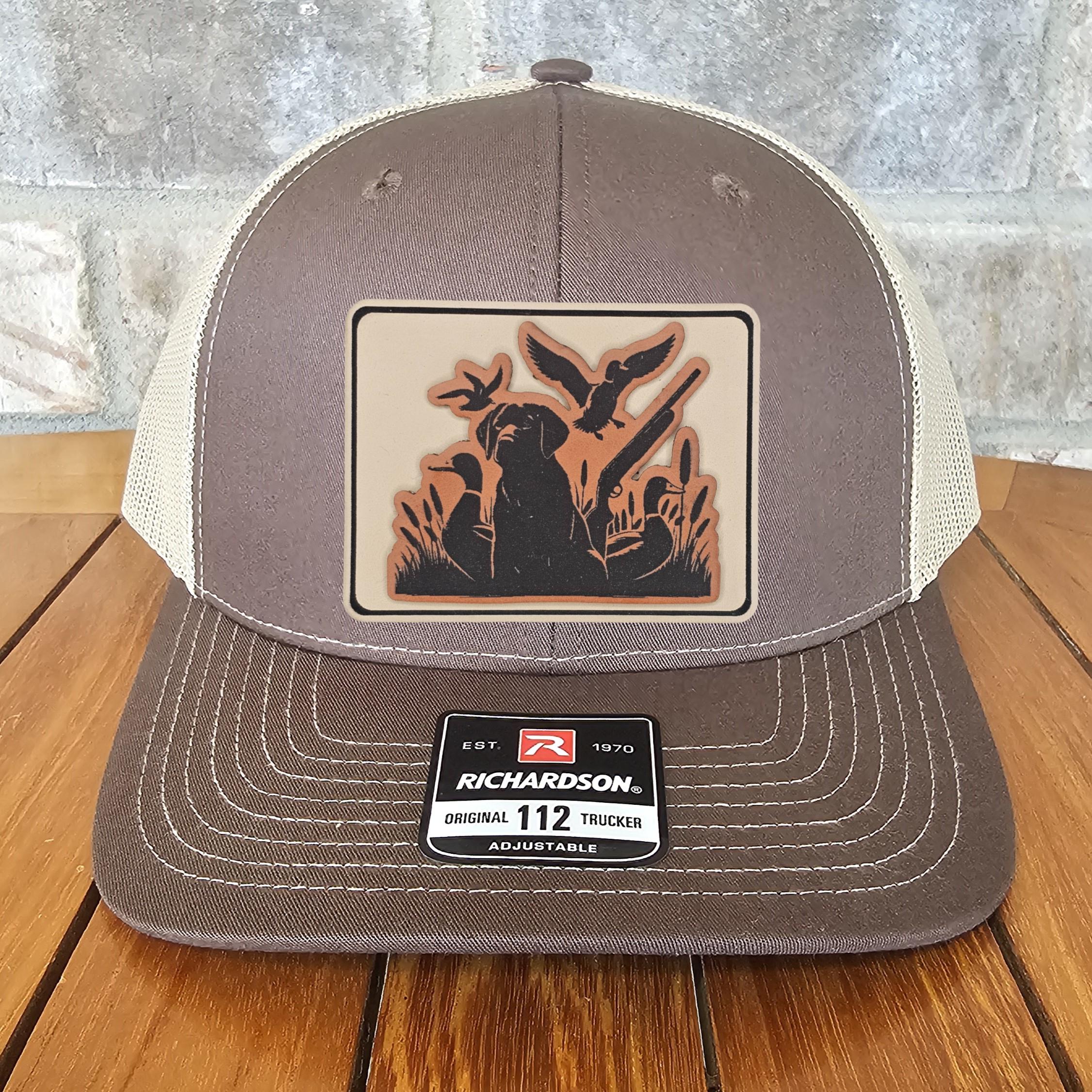Duck Hunter Leather Patch Trucker Hat, Richardson 112, Bird Dog Hunter Hat, Dad Gift Husband Gift, Sportsman Gift, Laser Engraved