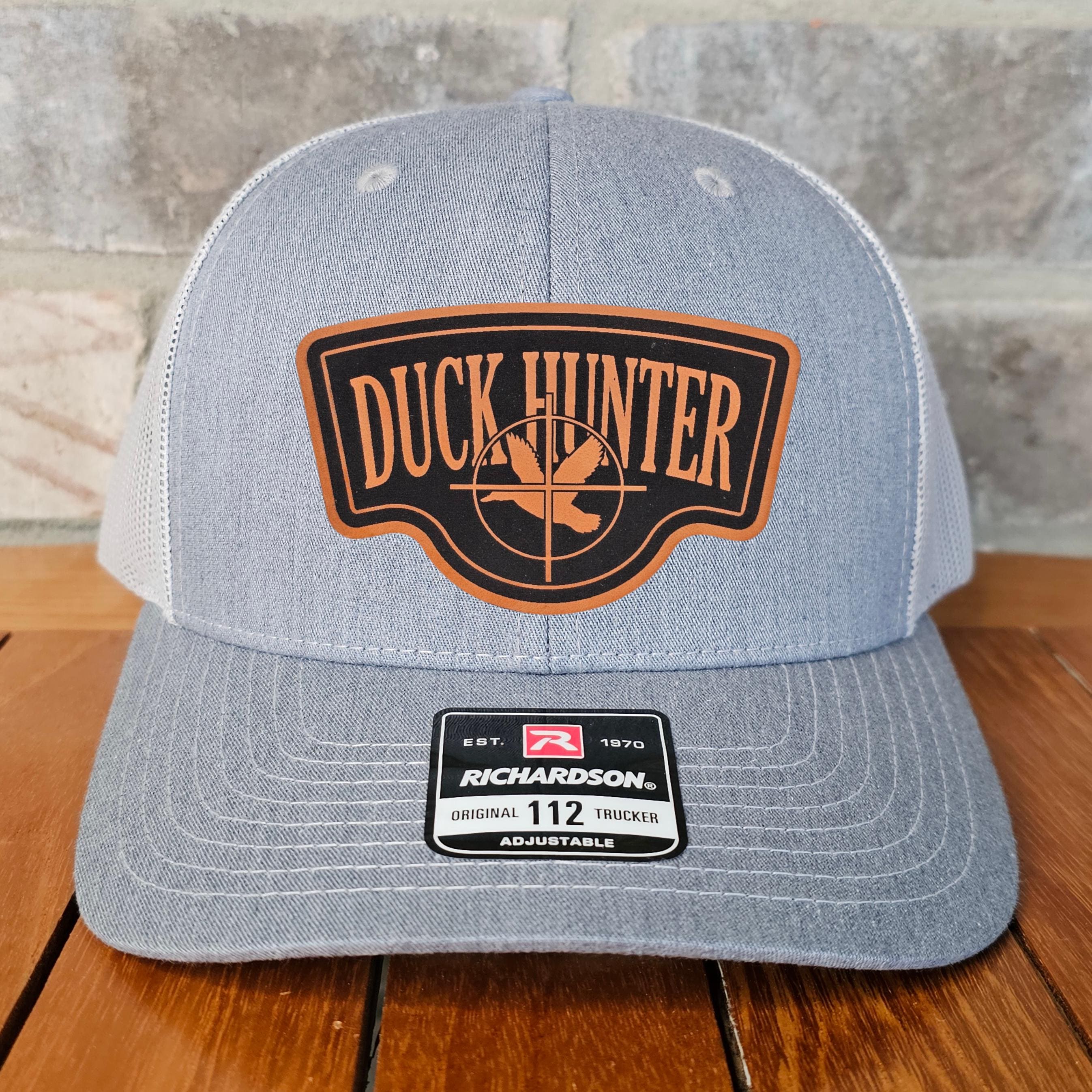 Duck Hunter Leather Patch Trucker Hat, Richardson 112, Bird Hunter Hat, Funny Dad Gift Husband Gift, Sportsman Gift, Laser Engraved