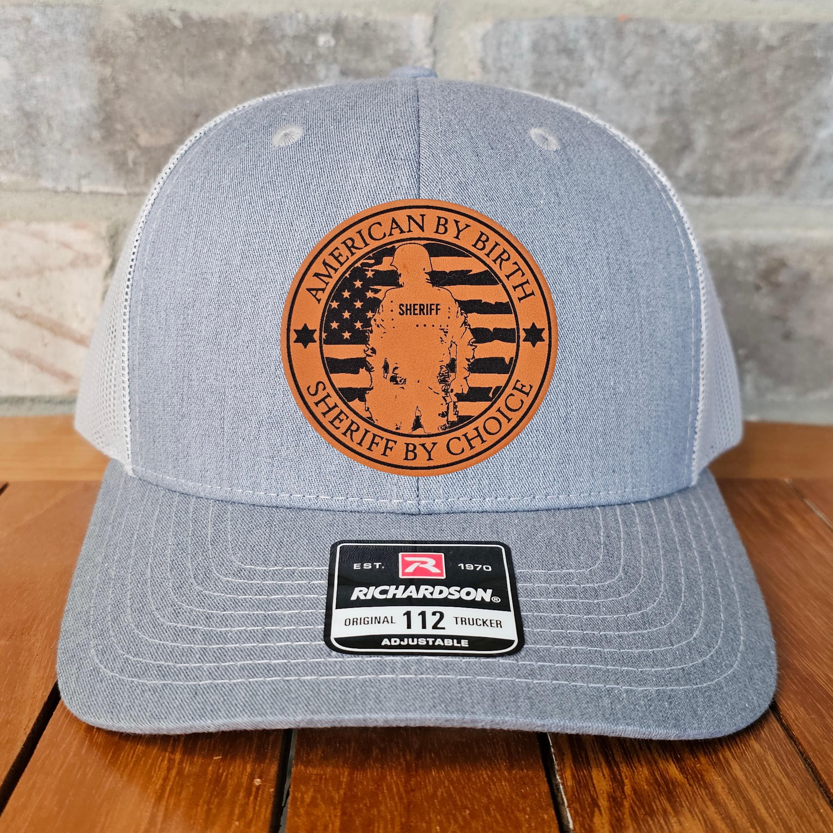 Sheriff Leather Patch Trucker Hat, Richardson 112, Police LEO Gift, American Hat, Deputy Gift, Husband Gift, Laser Engraved