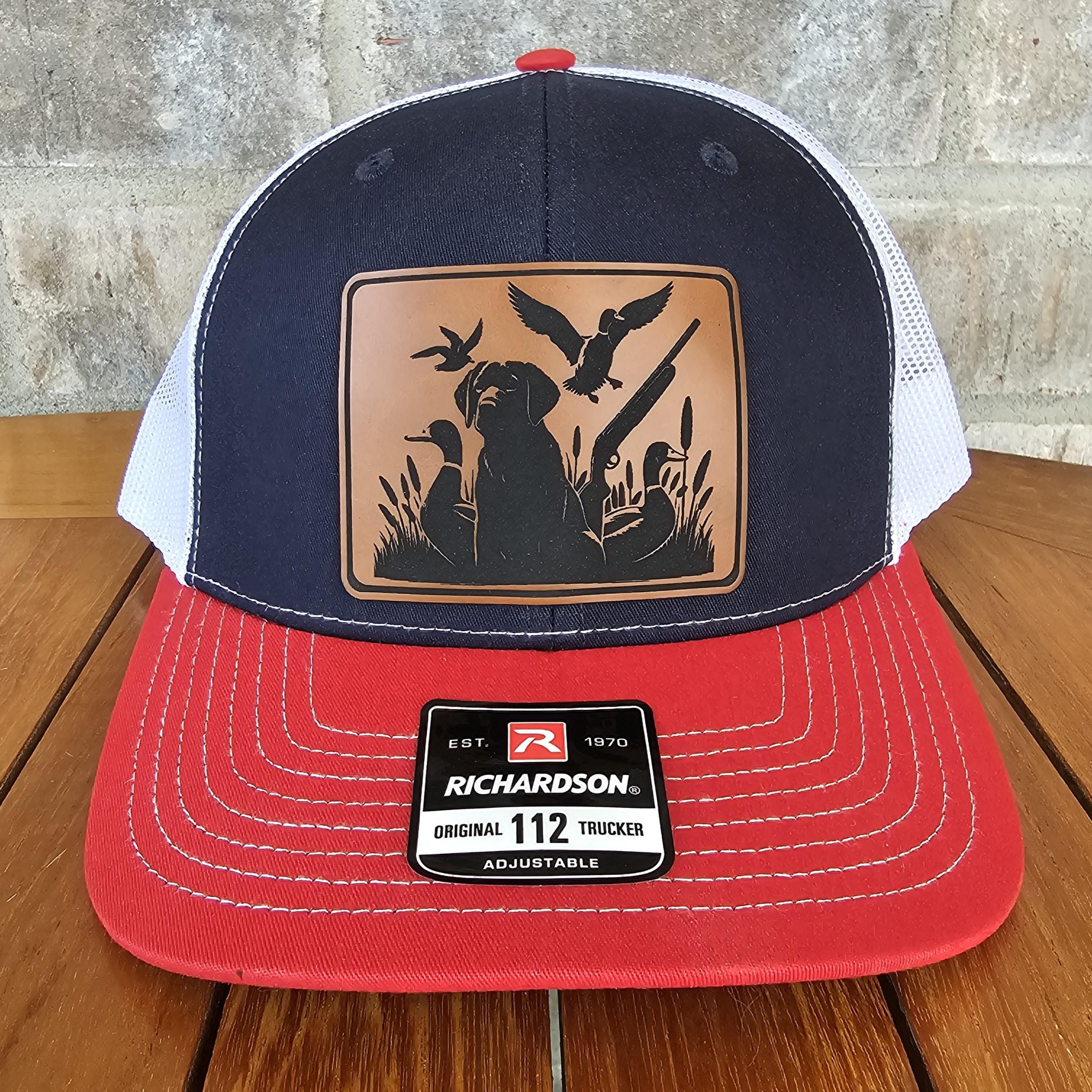 Duck Hunter Leather Patch Trucker Hat, Richardson 112, Bird Dog Hunter Hat, Dad Gift Husband Gift, Sportsman Gift, Laser Engraved