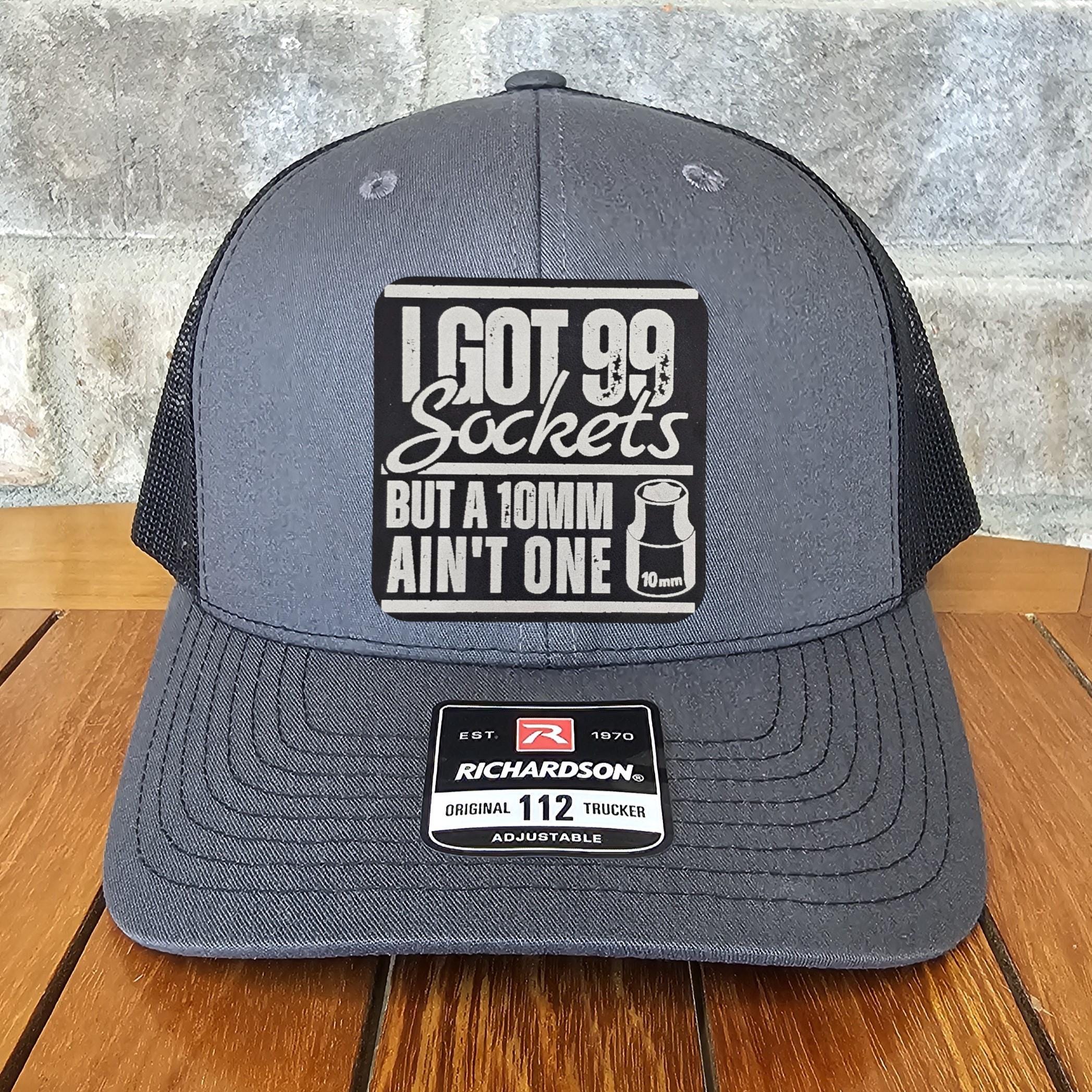 Funny Mechanics Leather Patch Trucker Hat, Richardson 112, 99 Sockets, Men Shop Cap, Work Hat, Garage Hat, Dad Gift, Pistons, Laser Engraved