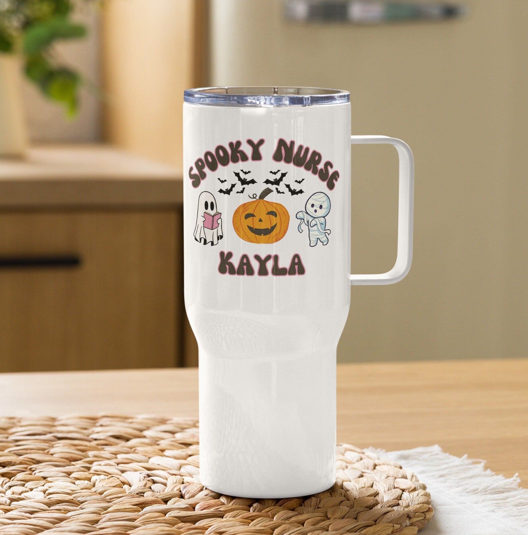 Custom Spooky Nurse Tumbler, Funny Nurse Halloween Mug, Retro Nurse Travel Cup, Cute Nurse Gift, Halloween Nurse Gift, Nursing Mug