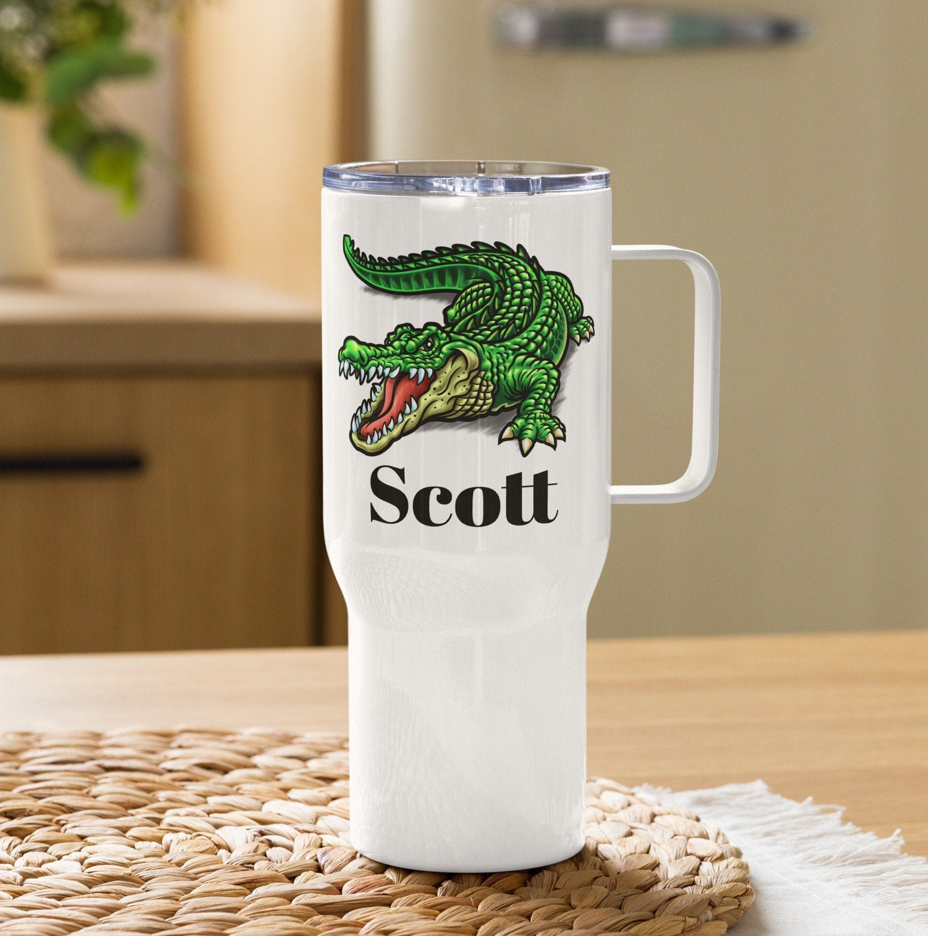 Custom Alligator Tumbler with Handle, Stainless Steel BPA-free Travel Cup, 25 Ounce Mug, Dad Gift