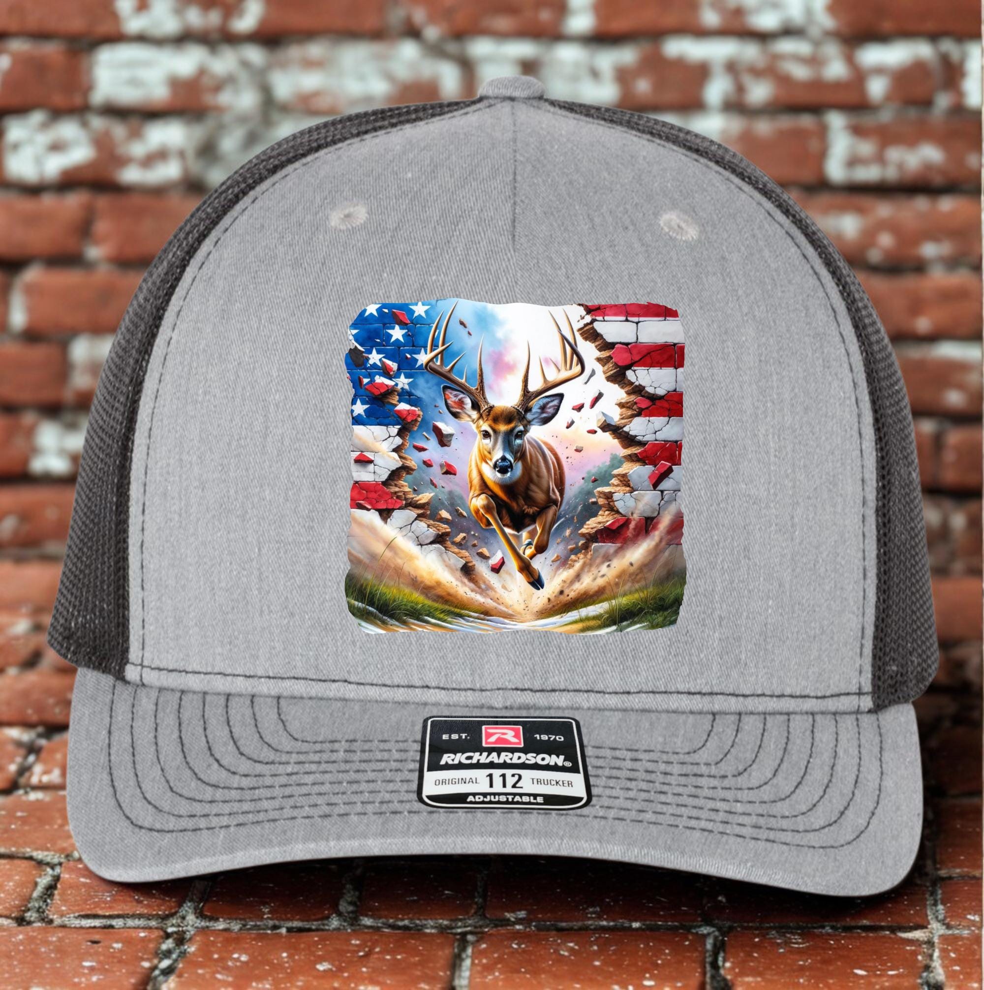 Deer Hunter Trucker Hat, American Flag Hat Design, Richardson 112, Deer Hunter Dad Gift Husband Gift, Sportsman Gift, Printed Hat