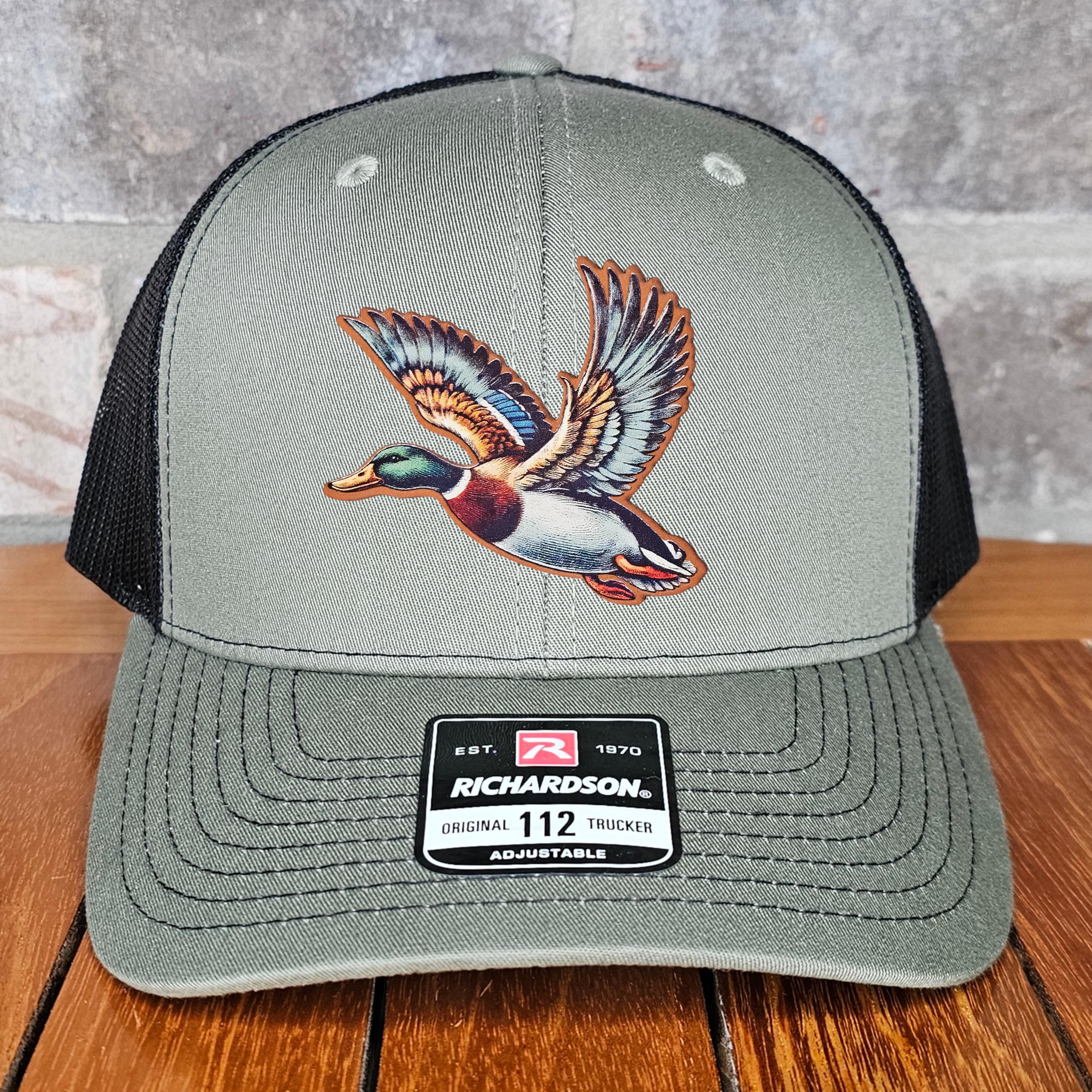 Duck Hunter Leather Patch Trucker Hat, Richardson 112, Colorful Bird Hunter Hat, Dad Gift Husband Gift, Sportsman Gift, Printed