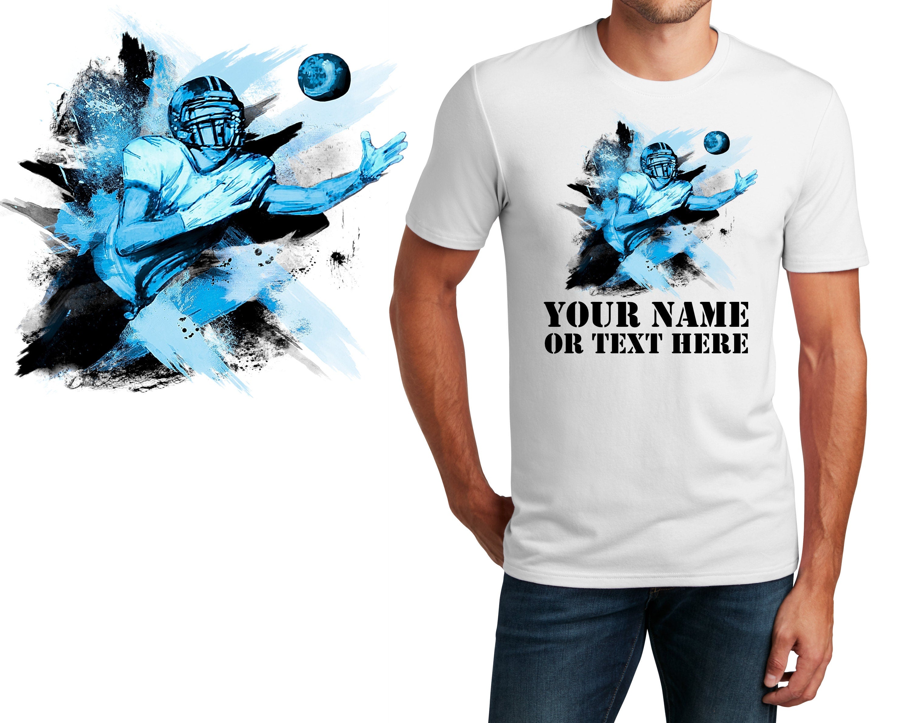 Personalized T-Shirt Football Player Paint Design, Sports Shirt, Printed Shirt, Custom Name, Dad Gift, Coach Gift, Unisex, Womens Tee