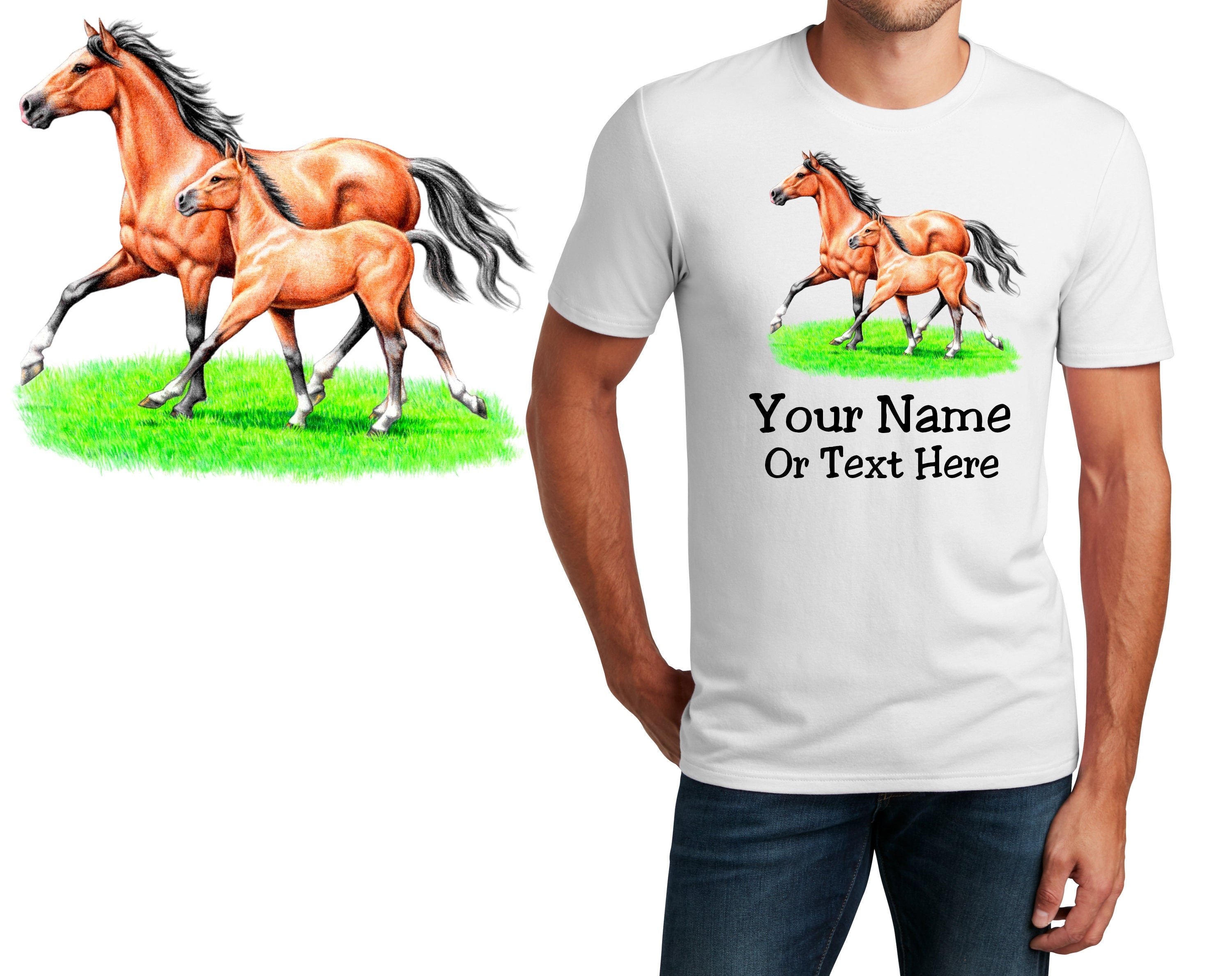 Personalized T-Shirt Horse Foal Pony Design, Sports Shirt, Custom Printed Shirt, Custom Name, Dad Gift, Horse Gift, Unisex, Womens Tee
