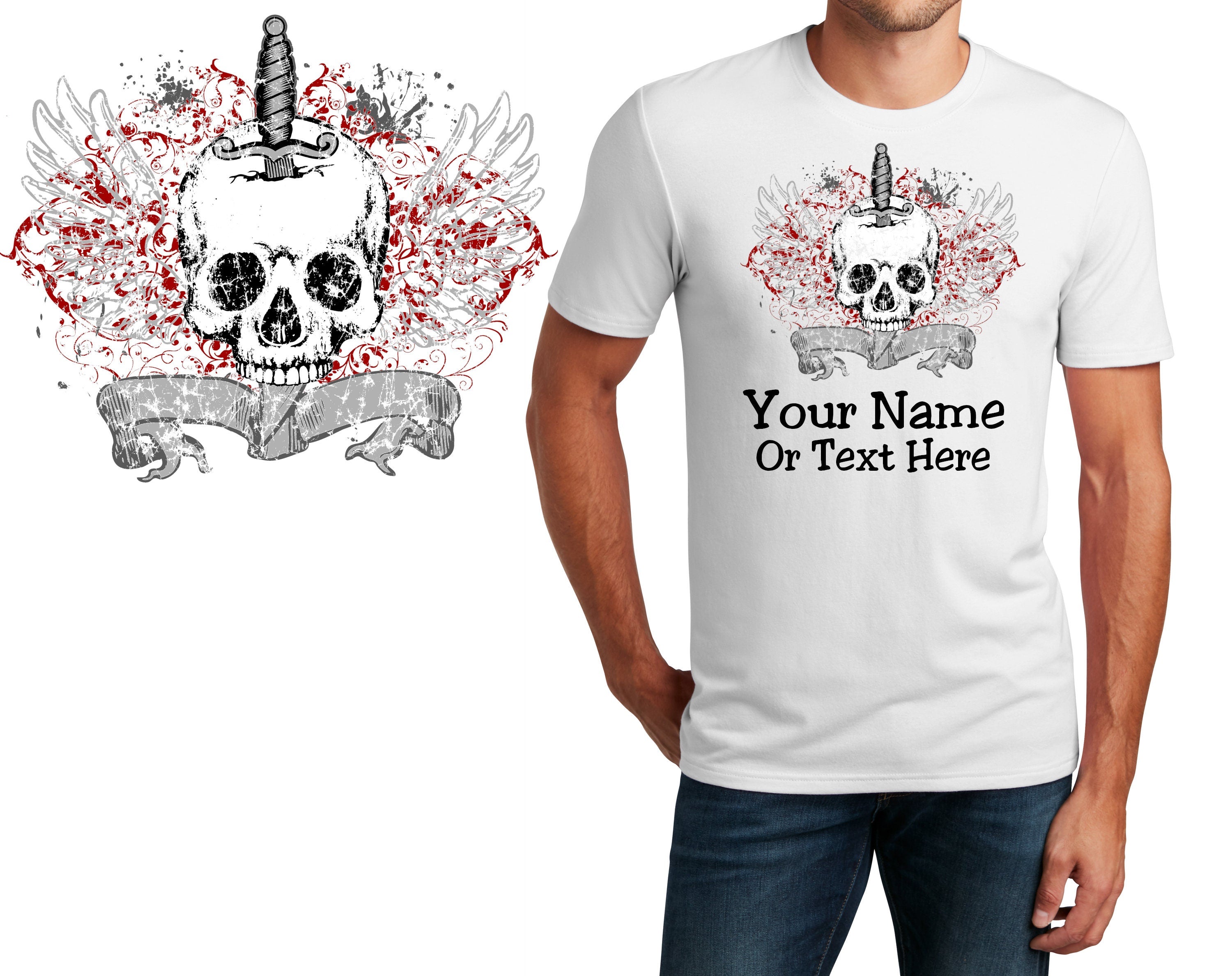 Personalized T-Shirt Goth Skull Dagger Design, Sports Shirt, Custom Shirt, Custom Name, Dad Gift, Fantasy Gift, Unisex, Womens Tee
