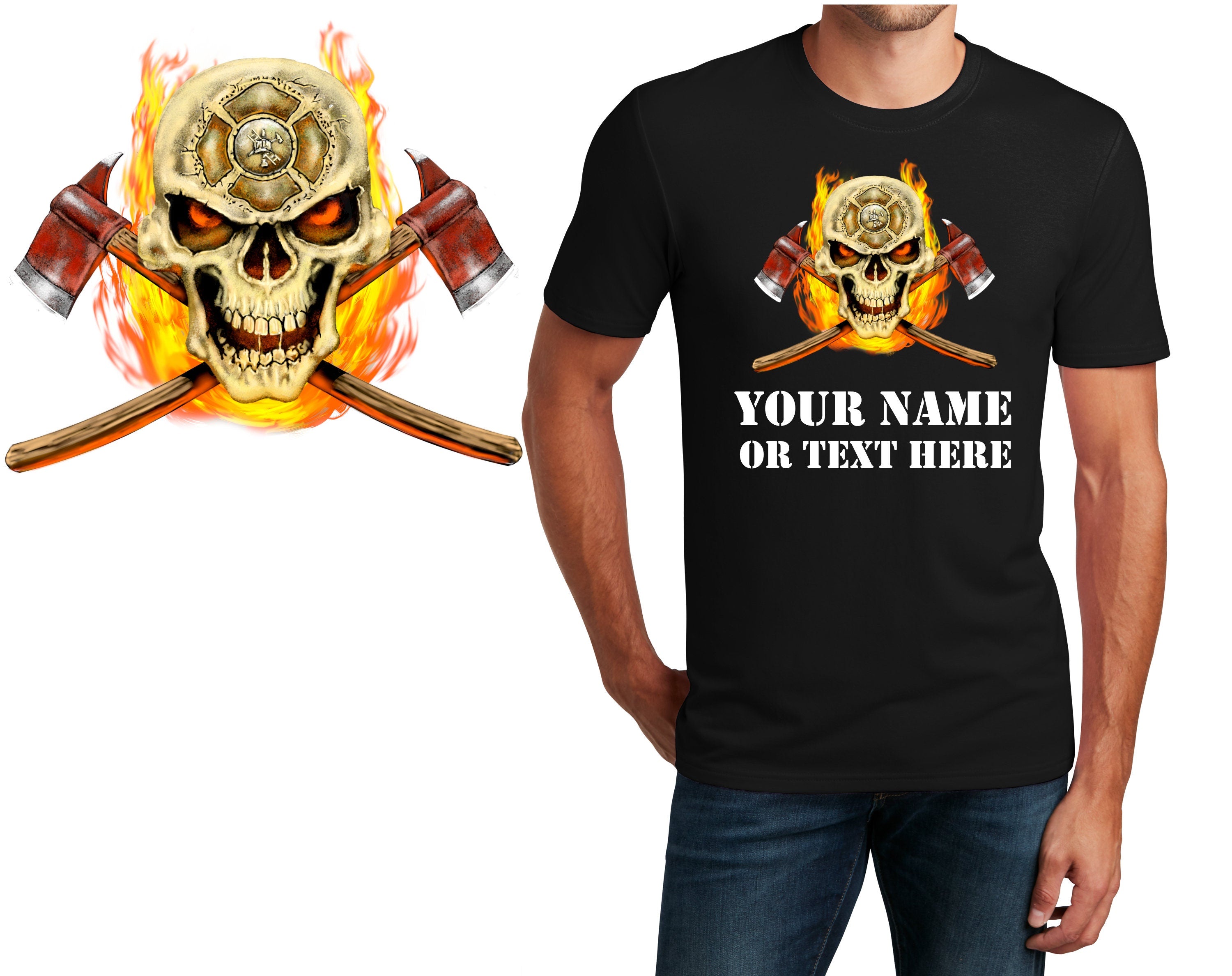 Personalized T-Shirt Firefighter Skull Design, Fire Shirt, Custom Shirt, Custom Name, Dad Gift, Fireman Gift, Unisex Women Tee