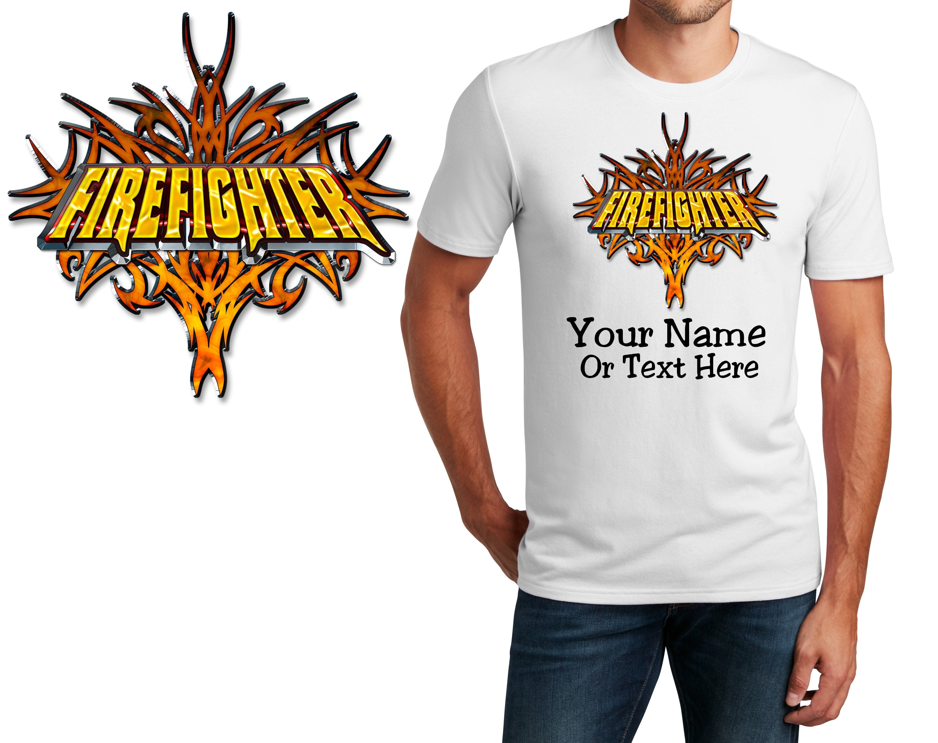 Personalized T-Shirt Firefighter Tribal Design, Fire Shirt, Custom Shirt, Custom Name, Dad Gift, Fireman Gift, Unisex Womens Tee
