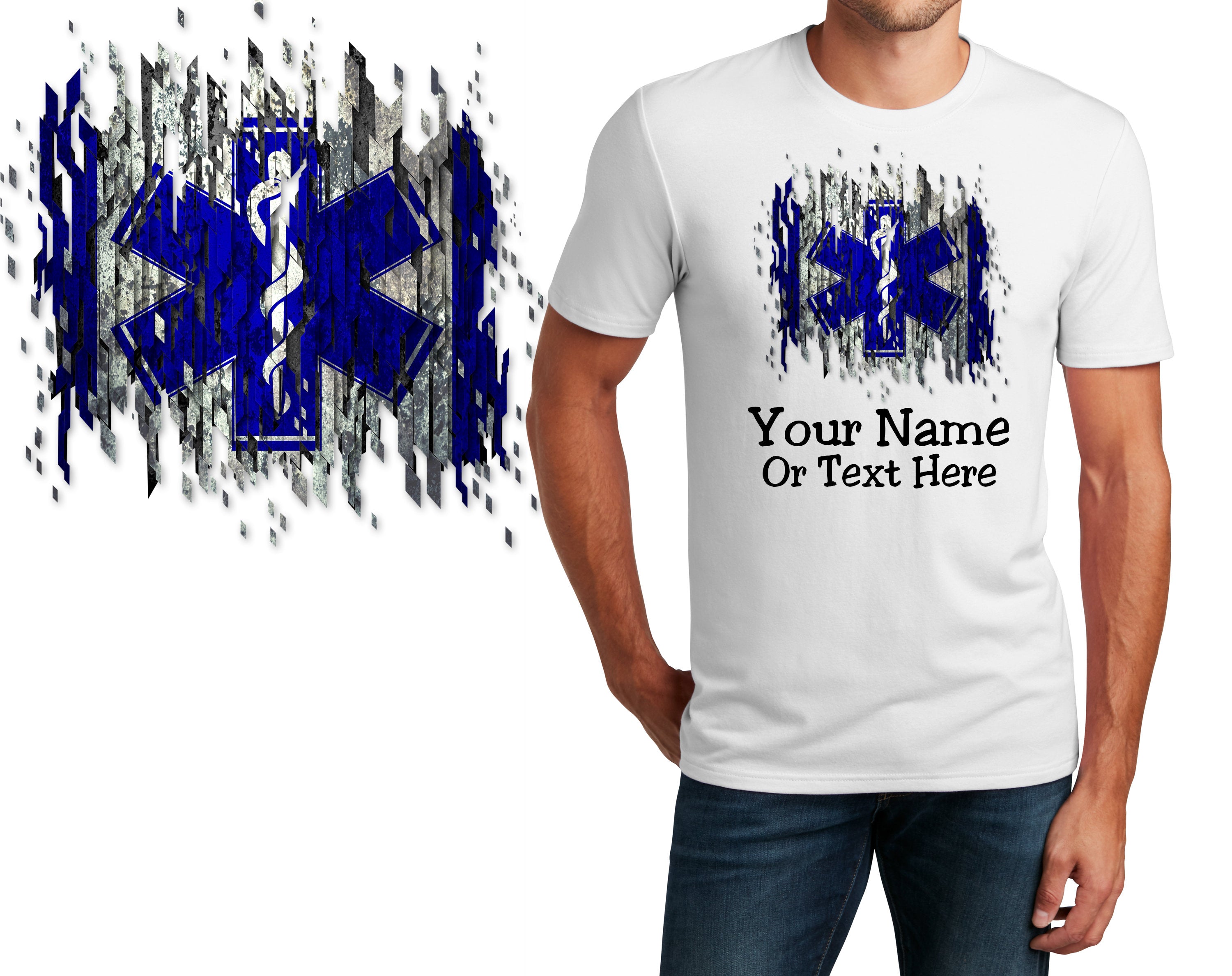 Personalized T-Shirt Firefighter EMS Flag Design, Fire Shirt, Custom Shirt Custom Name, Dad Gift, Fireman Gift, Unisex Womens Tee