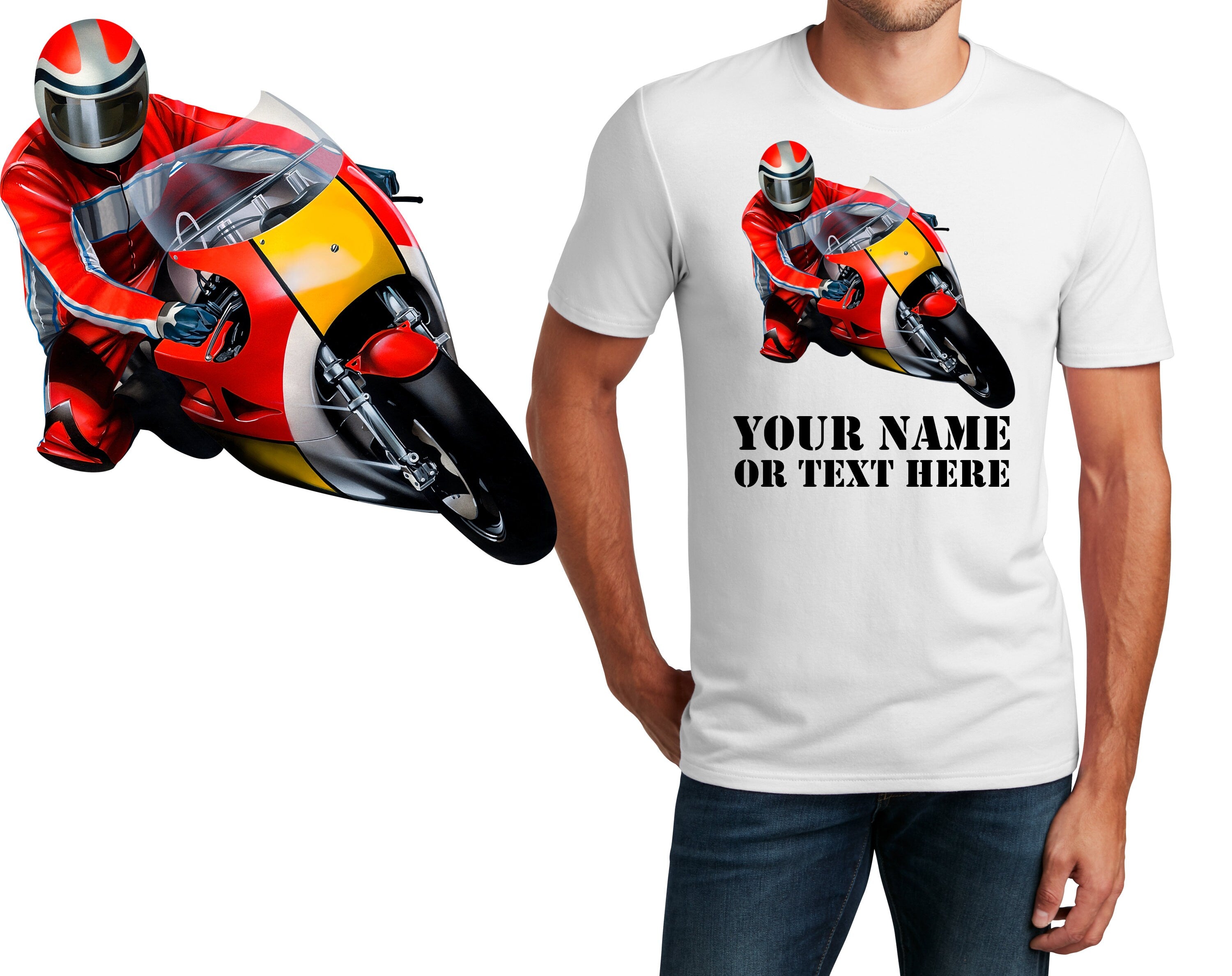 Personalized T-Shirt Motorcycle Racing Design, Sports Shirt, Printed Shirt, Custom Name, Dad Gift, Coach Gift, Unisex, Womens Tee