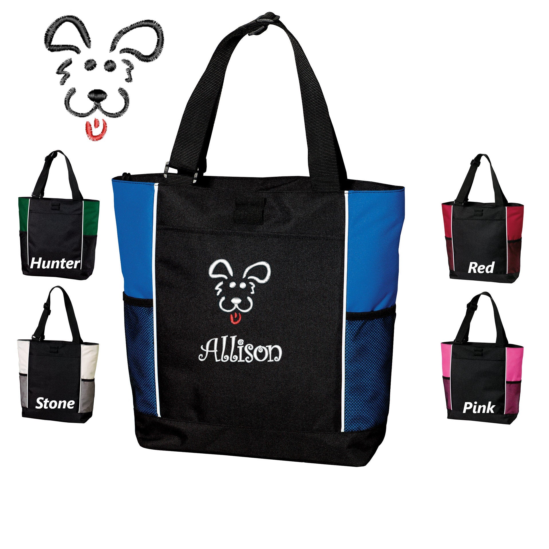 Personalized Canvas Puppy Dog Tote Bag, Pet, Custom Tote, Tote with Zipper, Embroidered Custom Name, Funny Gift