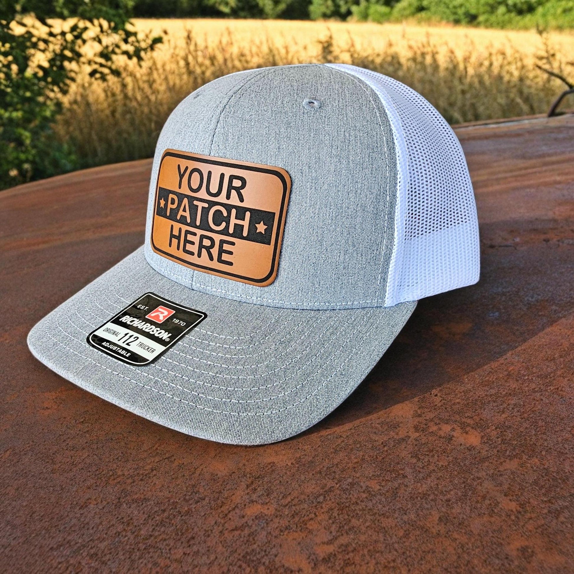 Elevate your headwear game with our premium Richardson 112 trucker hat, featuring a meticulously crafted, leatherette patch. This hat combines classic style with personalized touch, making it the perfect accessory for any adventure.