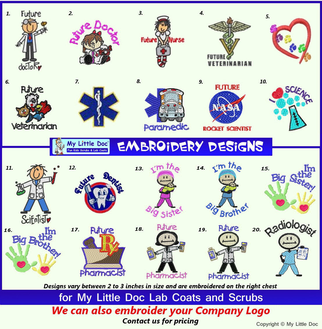 This Lab Coat includes 2 lines of personalized embroidery and an Embroidery Design.