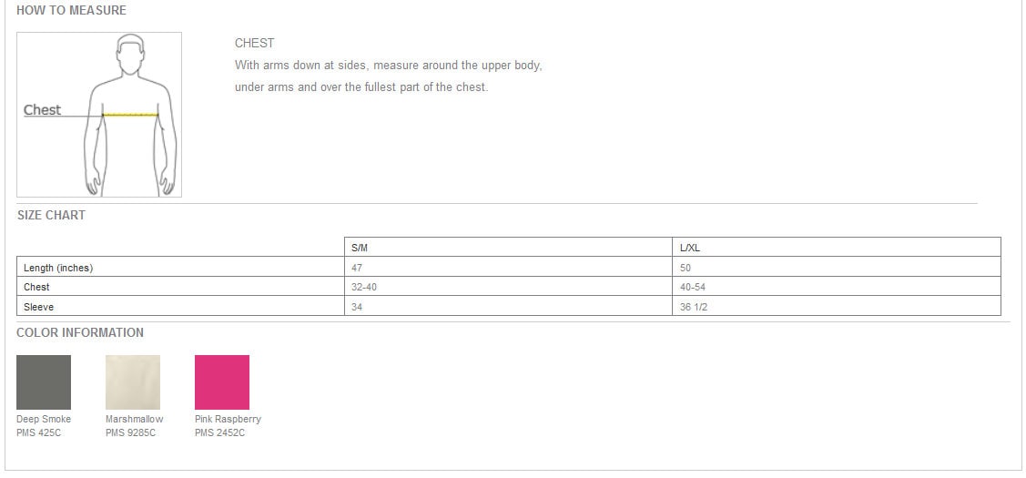 Available in Small/Medium and Large/Extra Large. See size chart in pictures