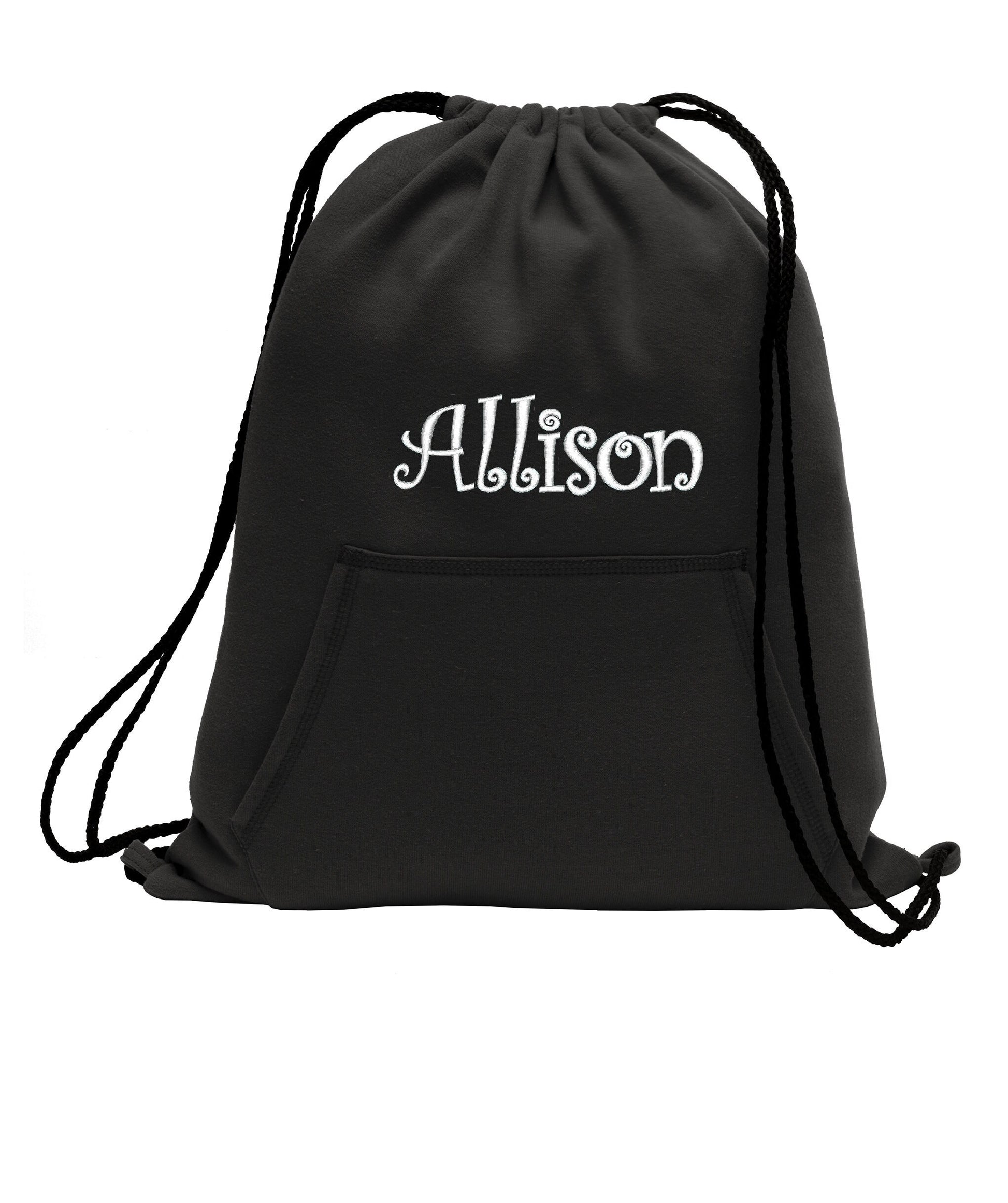 Personalized Black Cinch Pack, Fleece, Drawstring Gym School PE Backpack, Embroidered Monogrammed Custom Name, School Gift