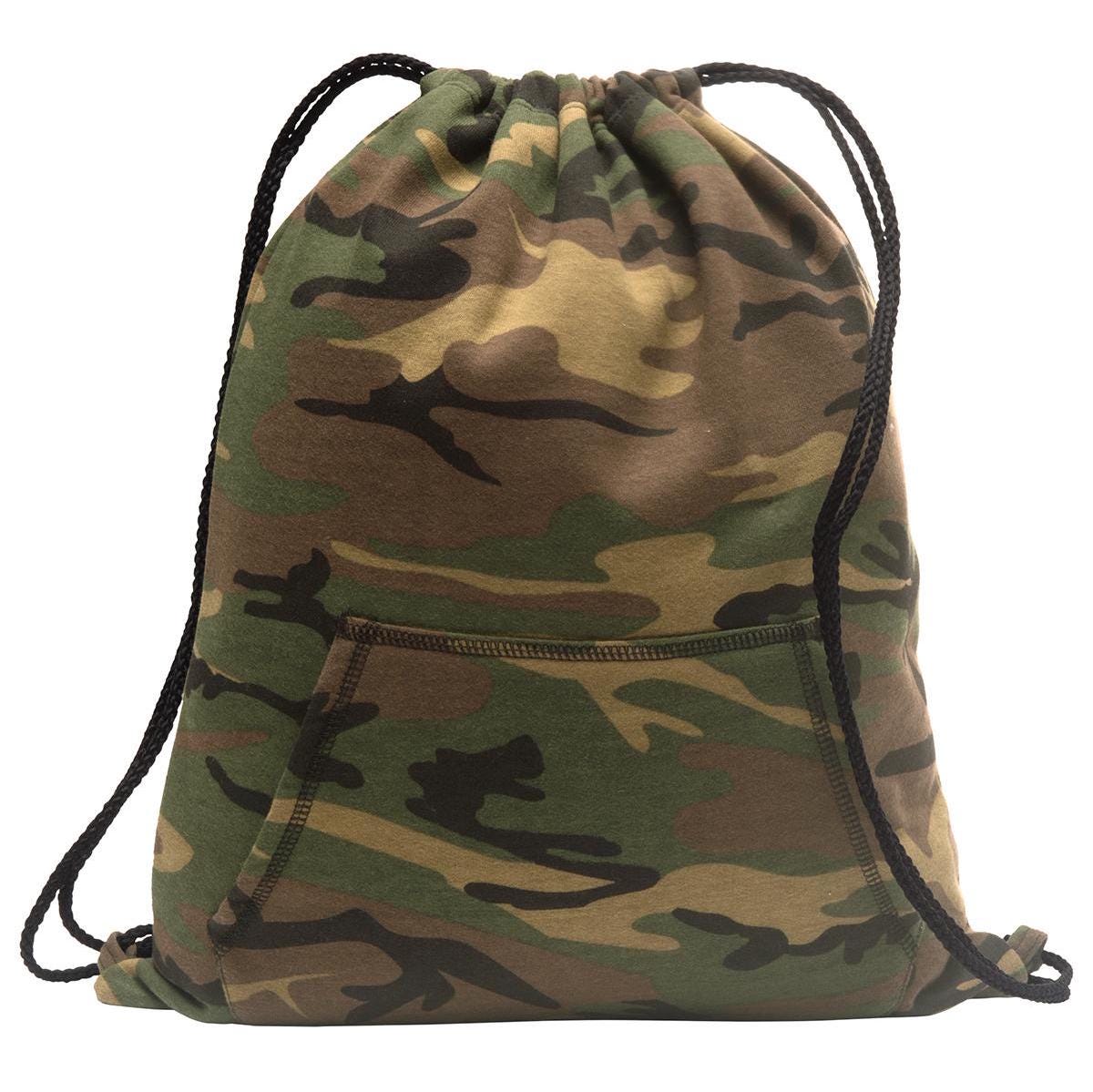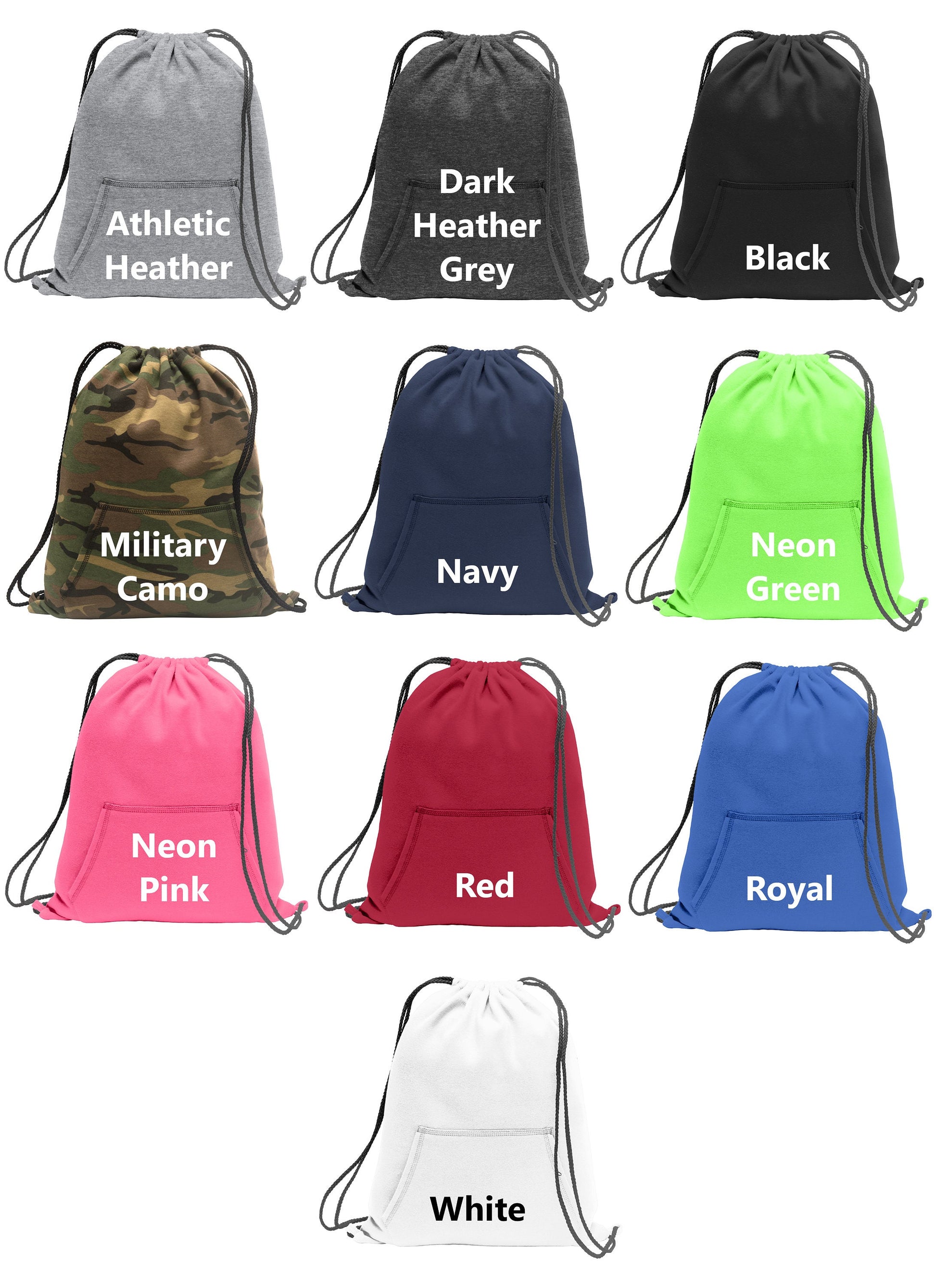 Made from soft Sweatshirt Fleece material with a front pouch pocket. Just right for school, the beach or by the pool, this large cinch pack will easily hold shoes and change of clothes.