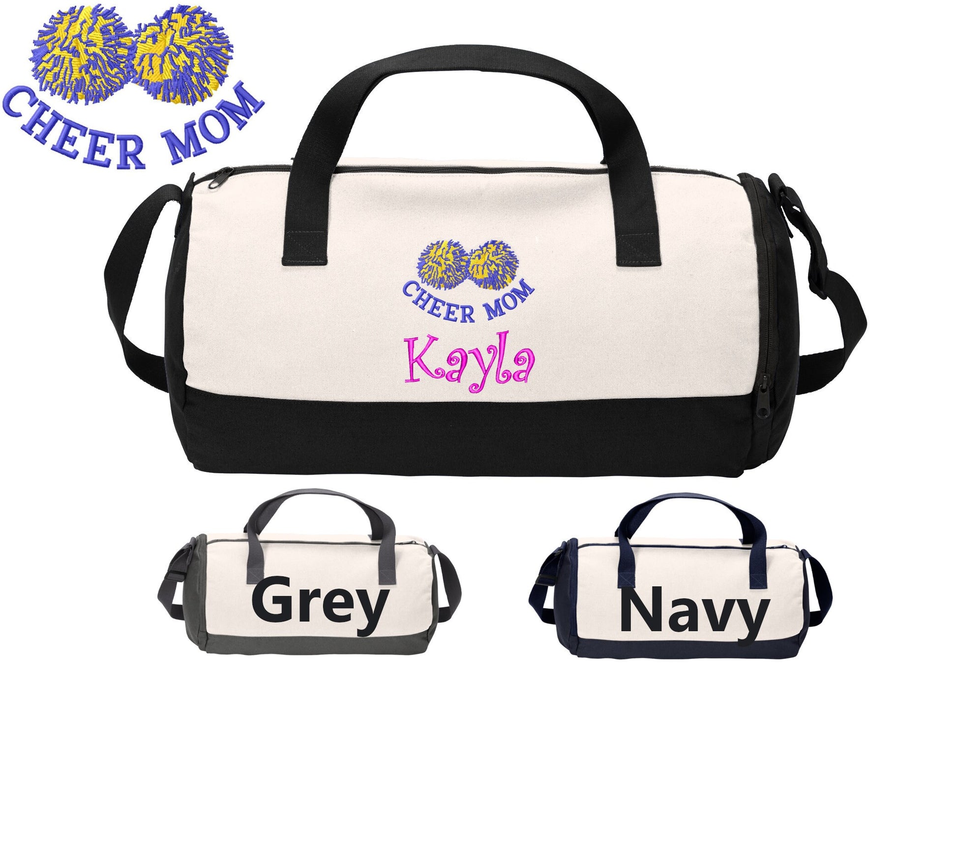 Personalized Cotton Cheer Mom Duffel Bag, Cheerleader Gym School PE Pool Duffle, Embroidered, Monogrammed Custom Name, Kids Gift School Gift