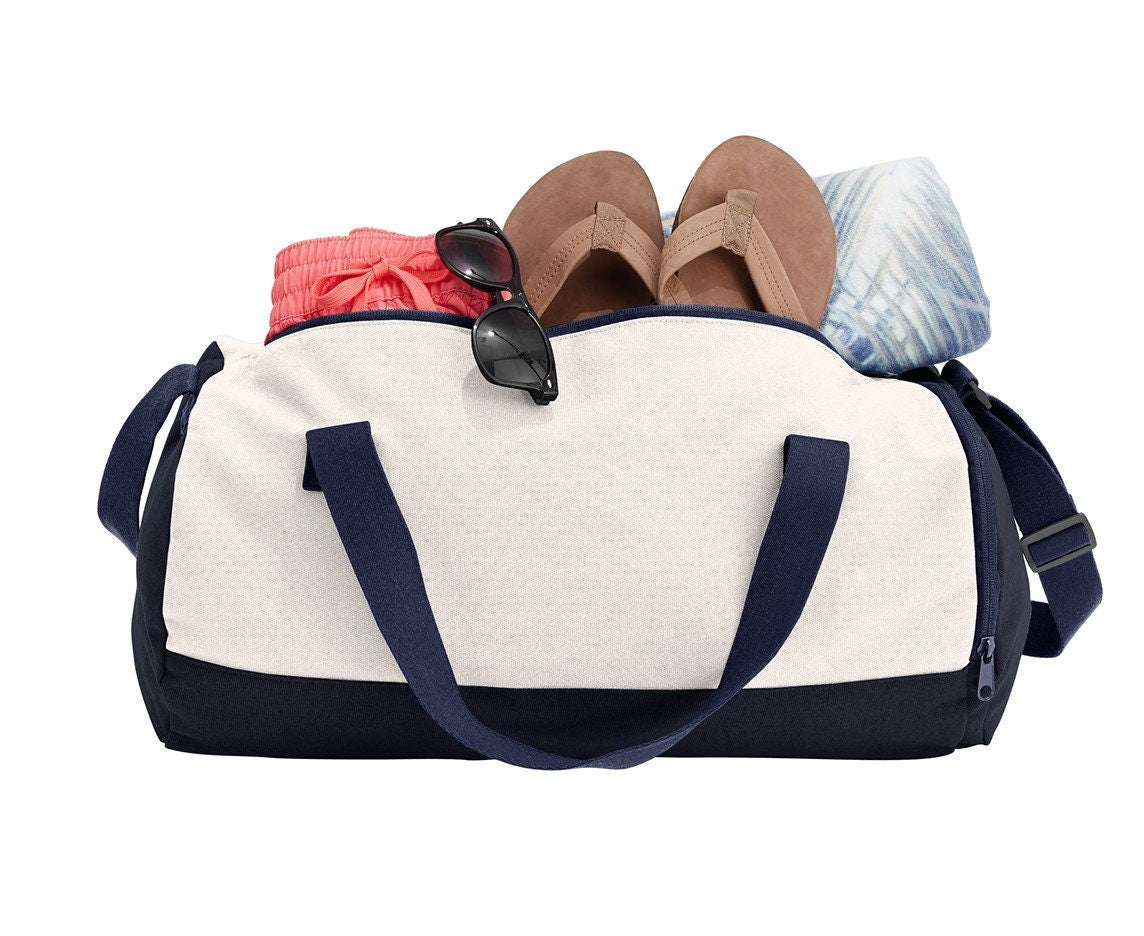 This Item includes: ► Cotton Duffel in the Color of your choice ► Embroidered Name ► Cheer Embroidery Design This soft, sturdy canvas duffel has plenty of room for sporting gear or weekend getaway essentials. Measurements: 11" High x 20" Wide x 11" Deep Duffel Bag Features: - 16-ounce, 100% cotton canvas - Large main compartment - Dyed-to-match cotton webbing handles and zippers - Adjustable, dyed-to-match cotton webbing shoulder strap - Zippered end pocket - Dimensions: 11"h x 20"w x 11"d; Approx. 2,420 cubic inches ***************************************************** We do not accept returns on Embroidered items ***************************************************** MKABG814