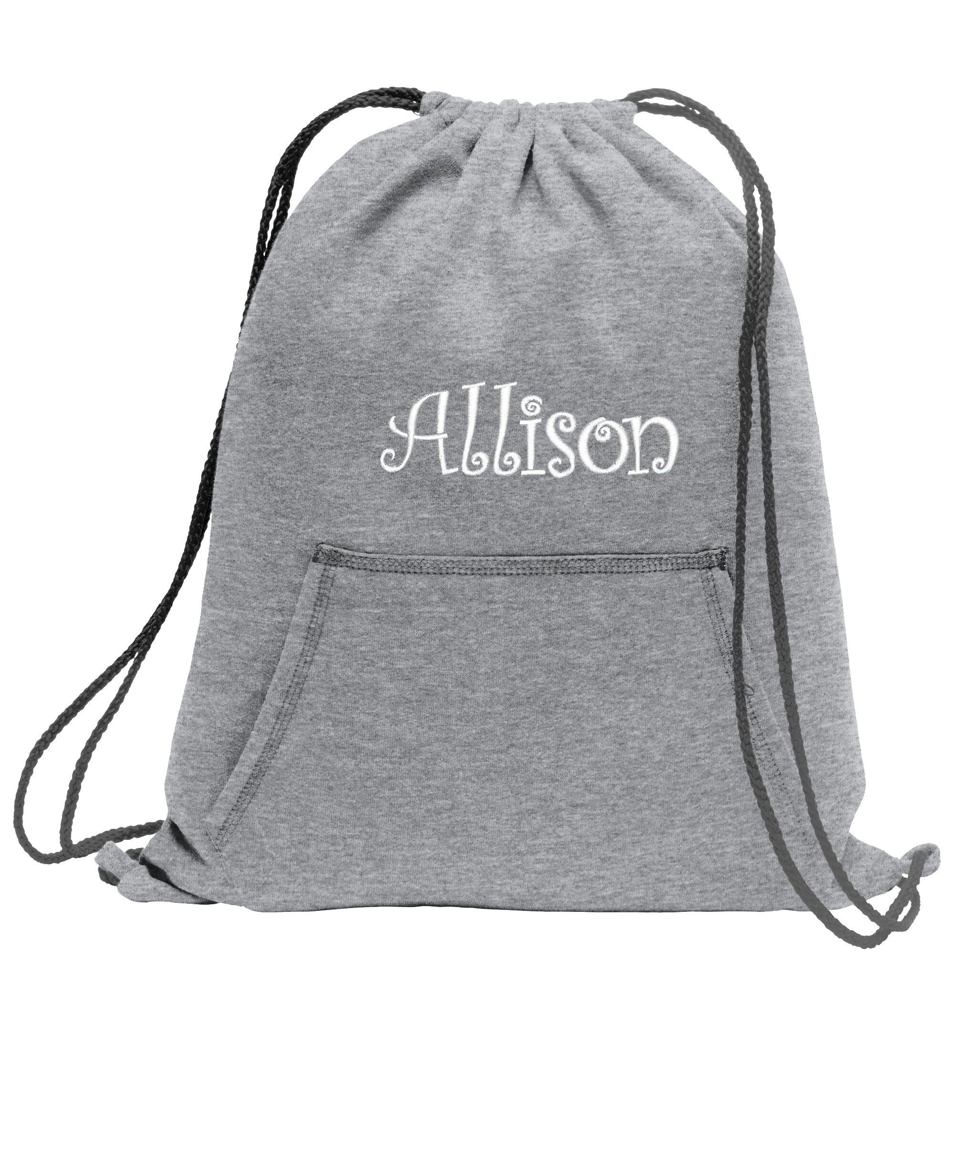 Personalized Grey Cinch Pack, Fleece, Drawstring Gym School PE Pool Backpack, Embroidered Monogrammed Custom Name, School Gift