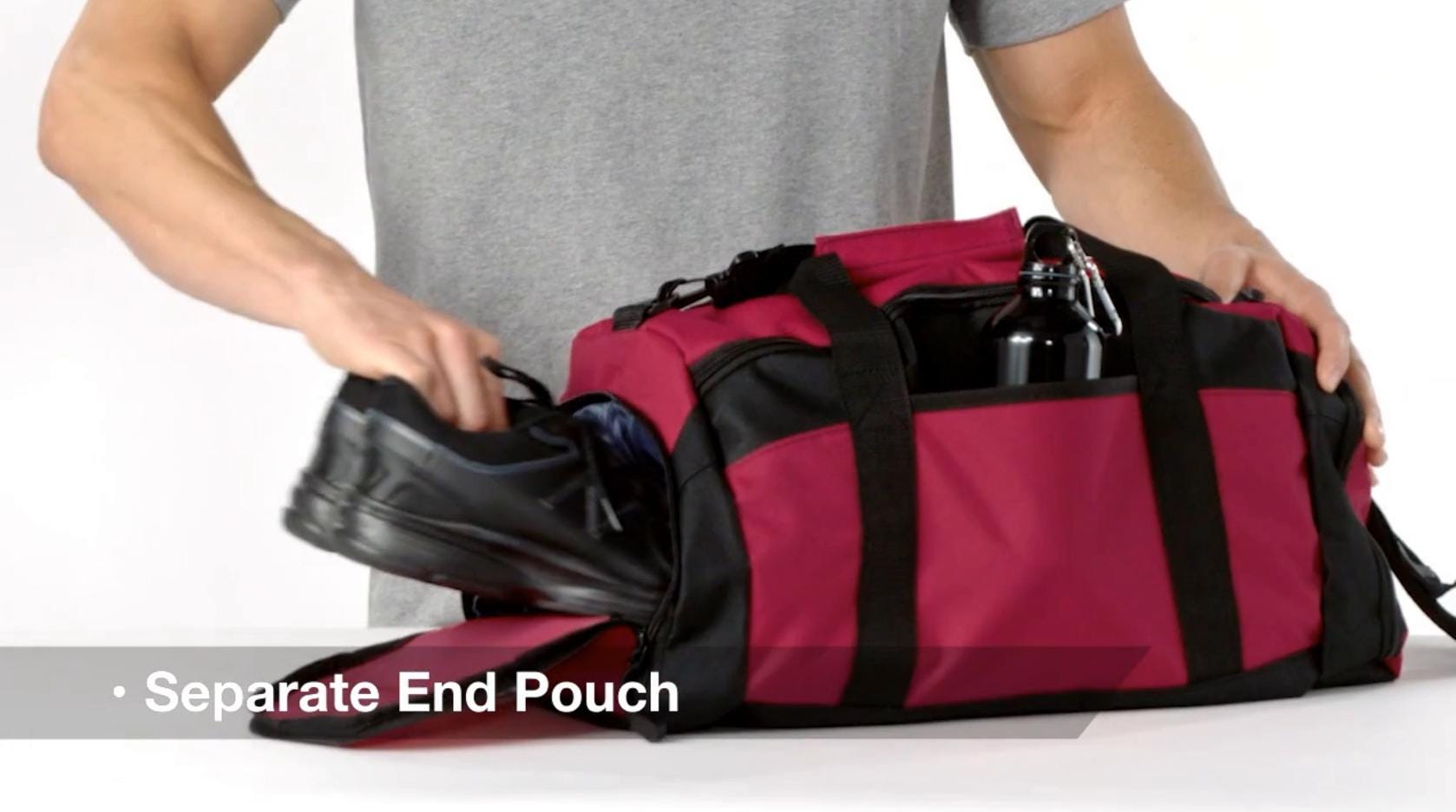 - Separate zippered end pouch for pool gear or shoes