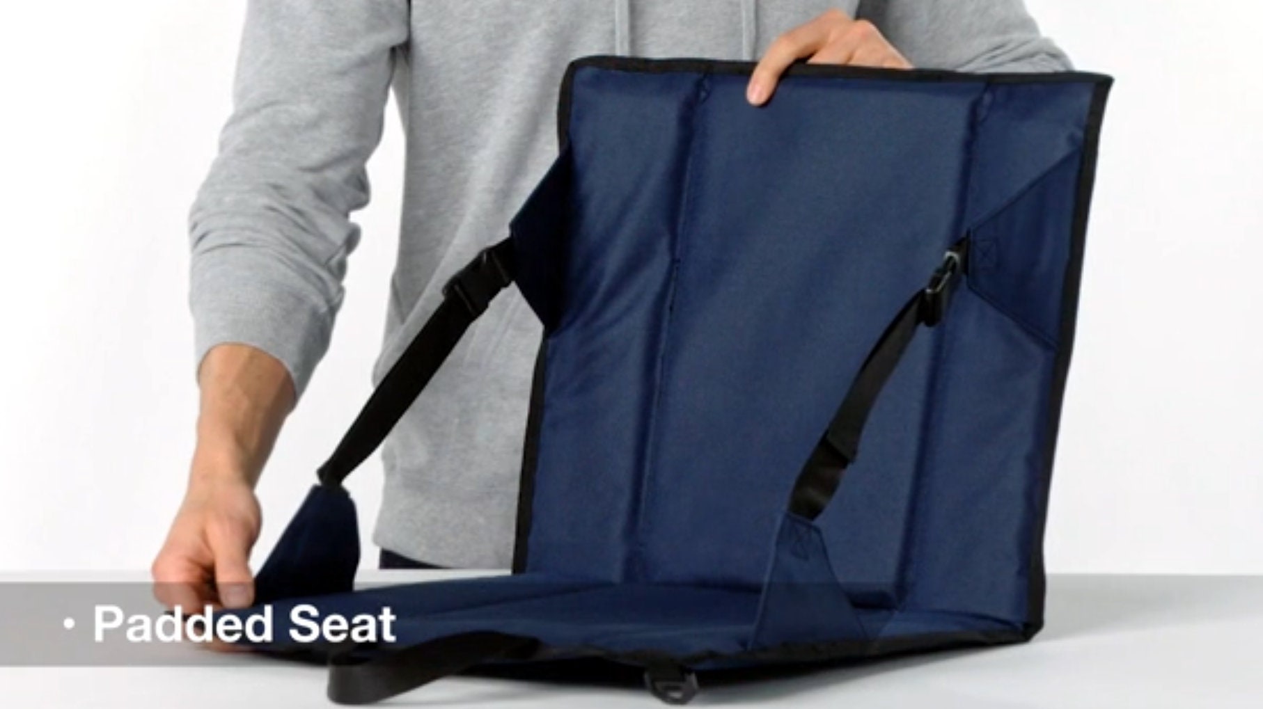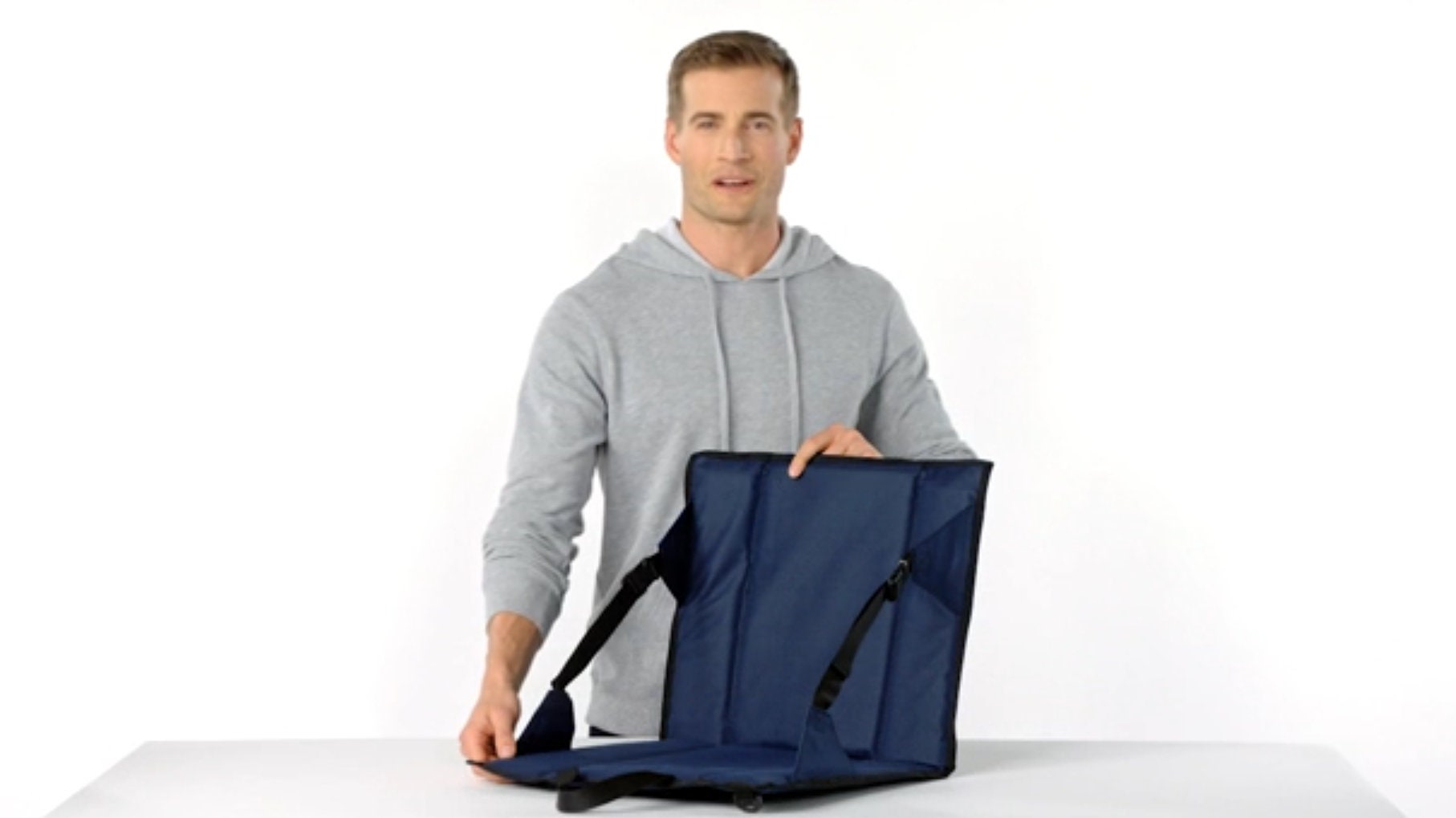 Cheer on the team and securely carry essentials. This portable padded seat adjusts for comfort and has a zippered pocket.