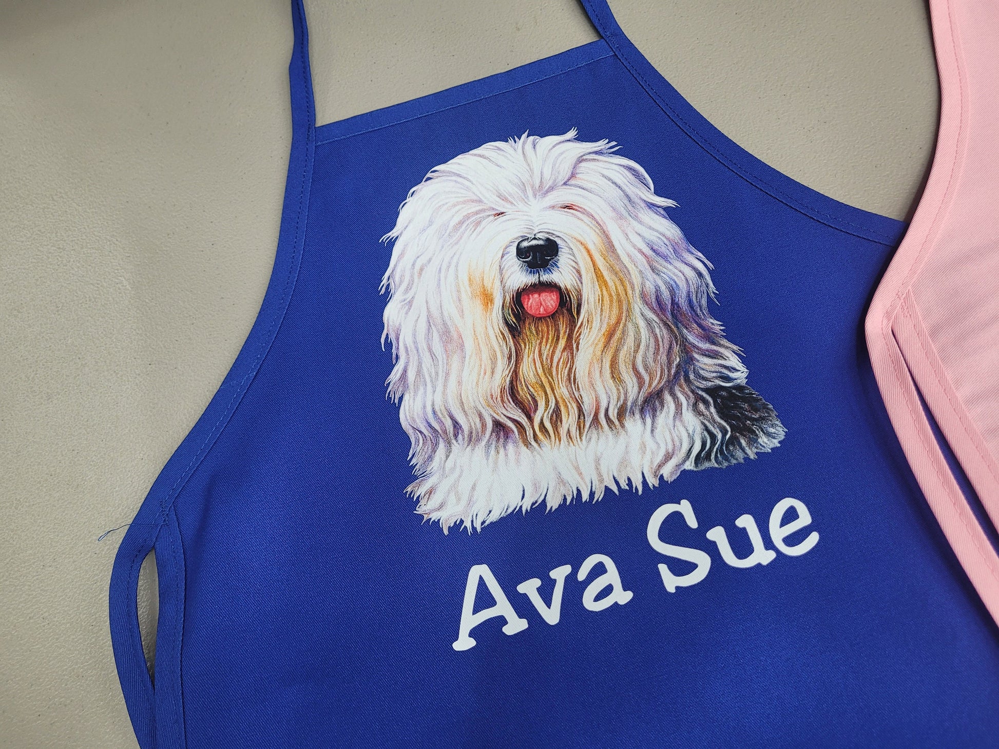 Personalized Kids Apron Old English Sheep Dog Design, Monogrammed Gift, Chef Gift, Cooking Party, Art Party, School Aprons, Printed Apron