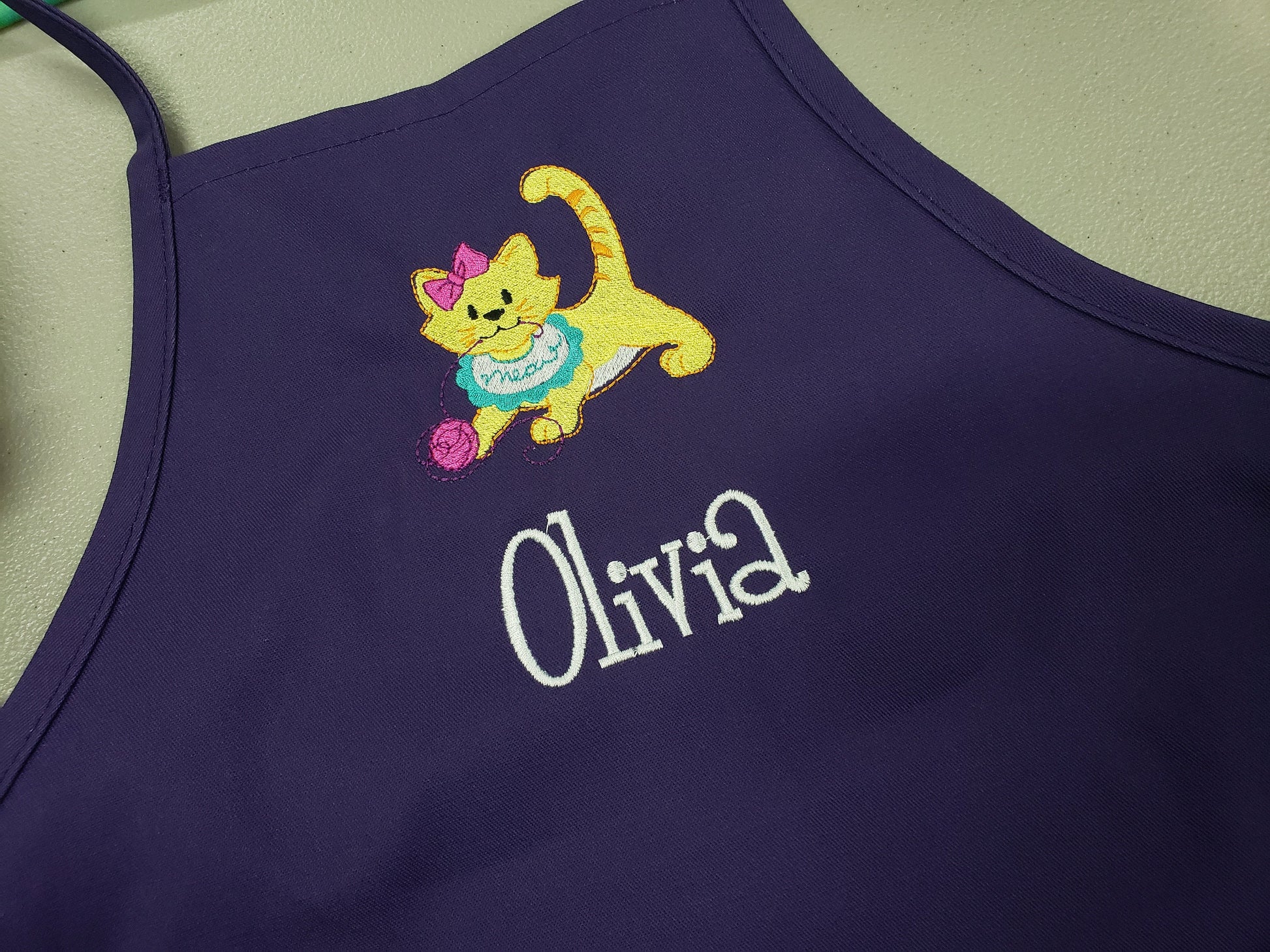 Personalized Kids Apron with Kitty Cat Embroidery Design, Monogrammed Birthday Gift, Kids Chef Apron, Kids Cook Apron, Custom Apron