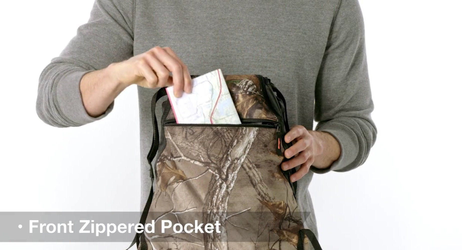 Ready for adventure, this rugged cinch pack features the authentic Realtree Xtra® camo pattern. A front zippered pocket holds keys and valuables securely.