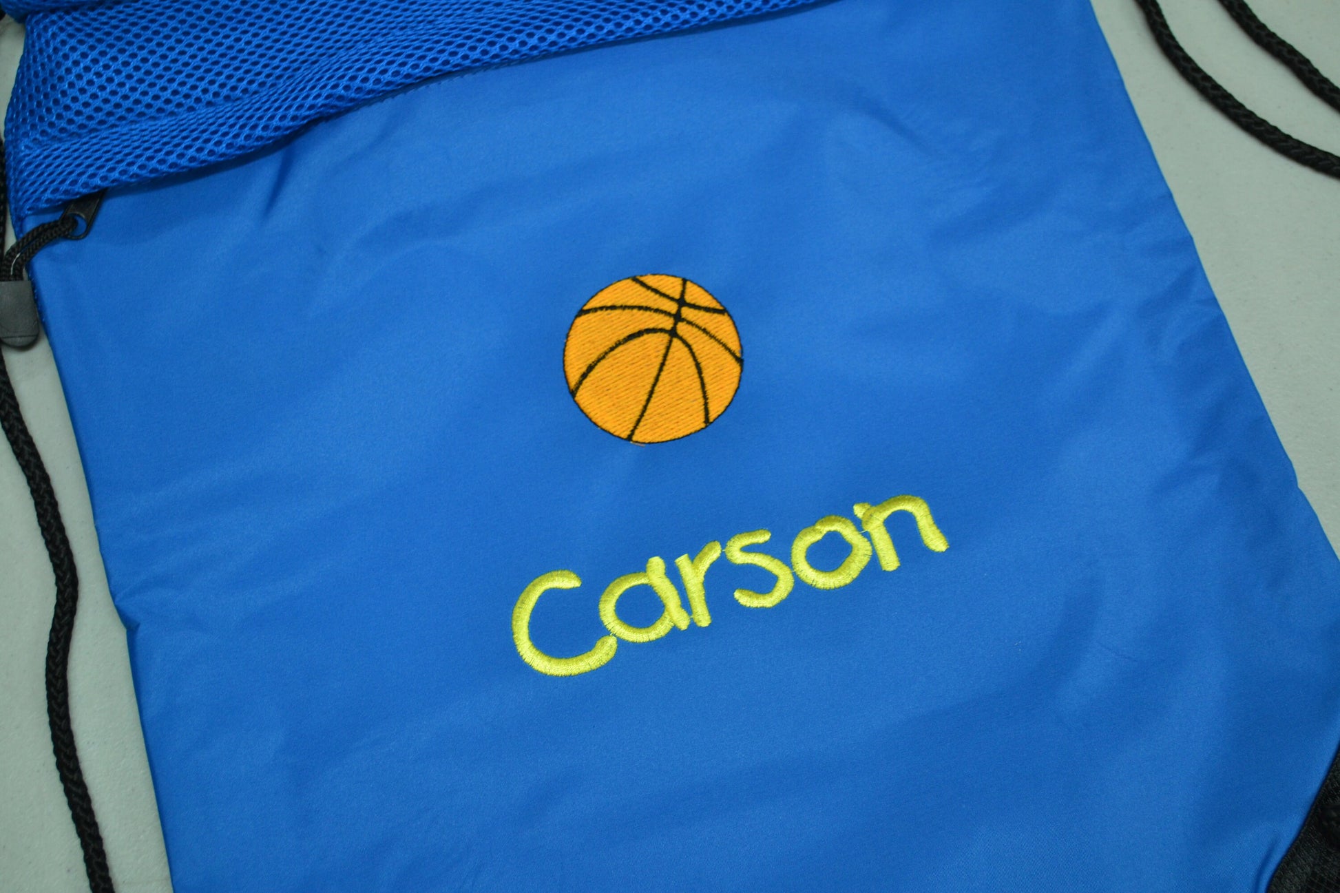 Personalized Kids Cinch Pack Drawstring Gym School PE Pool Backpack Embroidered Basketball Monogrammed with Custom Name Perfect Kids Gift