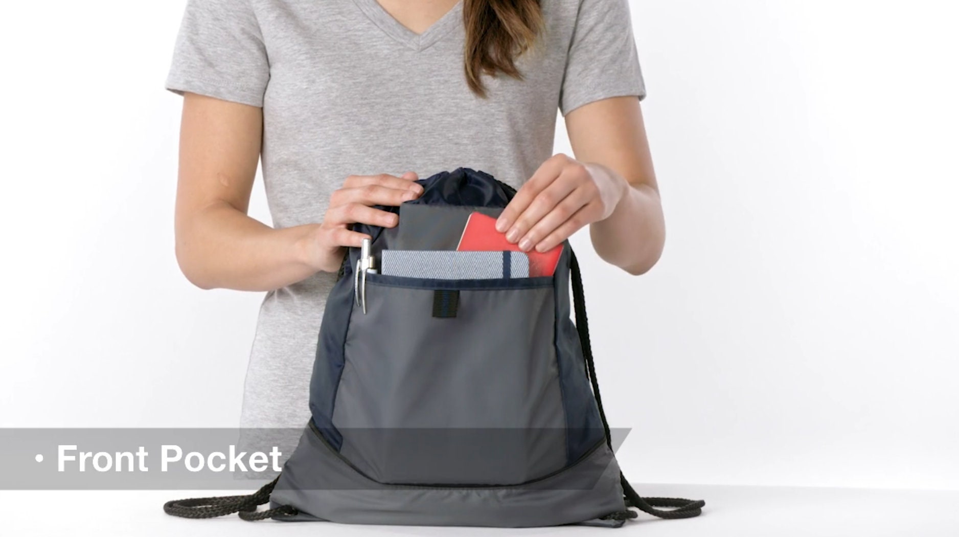 This colorful cinch pack is a tremendous value and features a large front storage pocket.