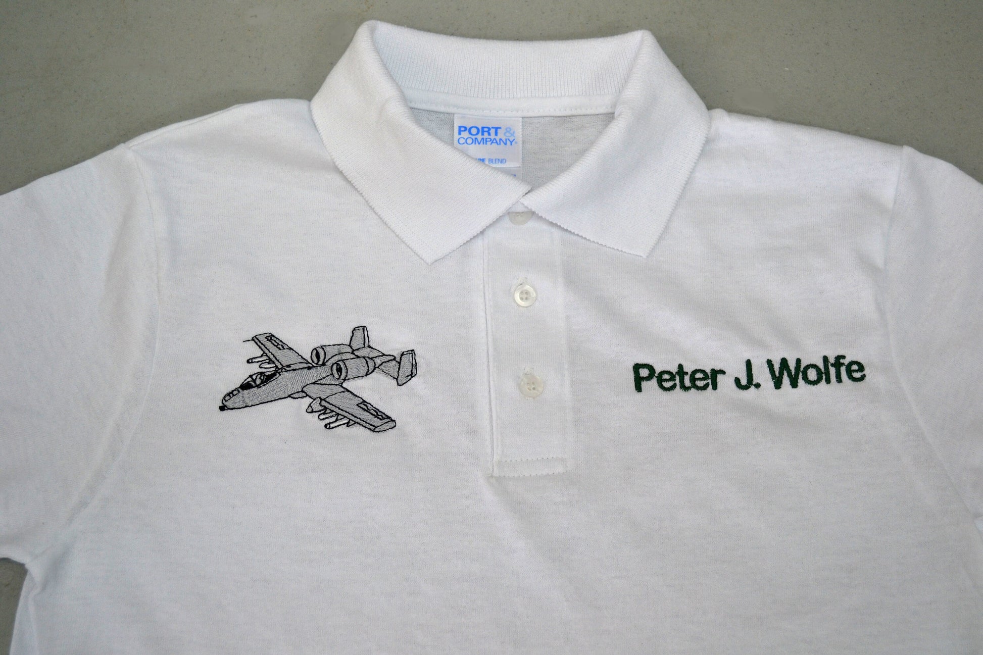Personalized Kids Polo Shirt Embroidered A10 Warthog Airplane Monogrammed with a Name or Text of Your Choice