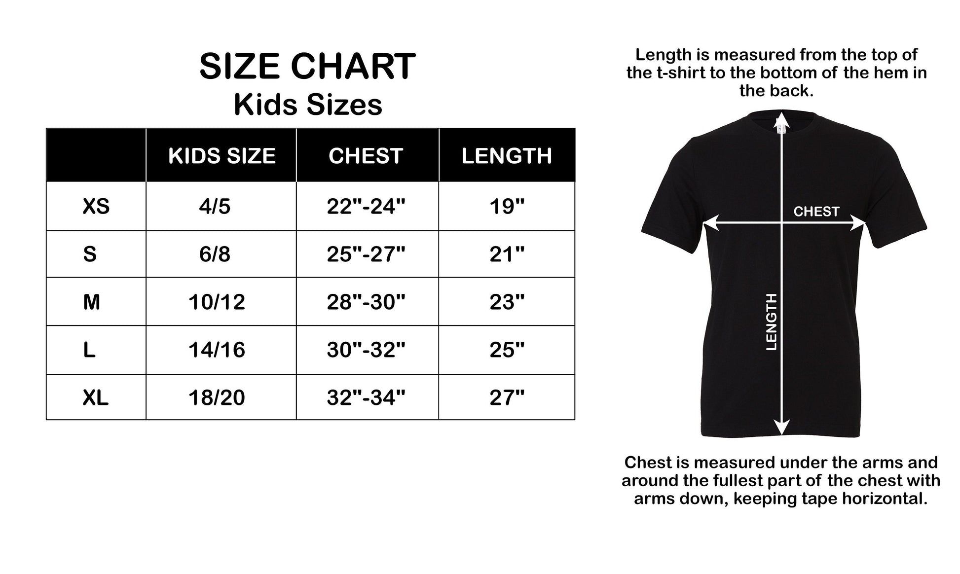 Small = Size 6/8, Chest 25" to 27"