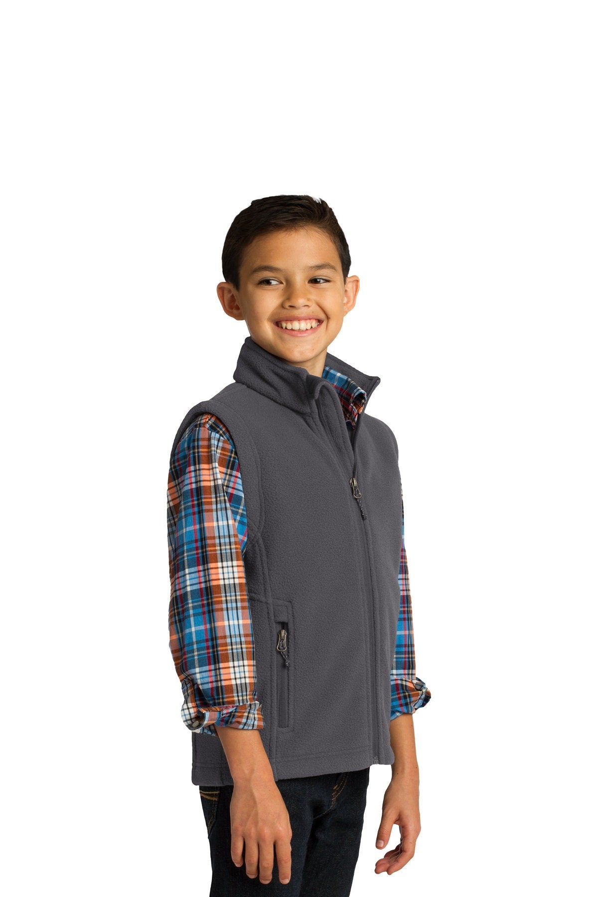 This Item includes: - Kids Fleece Vest - Embroidered Name Measurements: Extra Small = Size 4, Chest 25" to 26" Small = Size 6/8, Chest 26" to 28" Medium = Size 10/12, Chest 28" to 30" Large = Size 14/16, Chest 30" to 32" Extra Large = 18/20, 32" to 35" Chest Ready for layering, this super soft, midweight fleece vest offers great warmth at a great price. Jacket Features: - 8.3-ounce, 100% polyester - Twill-taped neck - Reverse coil zipper -Zipper garage - Knotted zipper pulls - Tricot-lined armholes - Front zippered pockets - No drawcord or toggles at hem ***************************************************** We do not accept returns on Embroidered items Please Choose Your Size Carefully ***************************************************** MKAY219