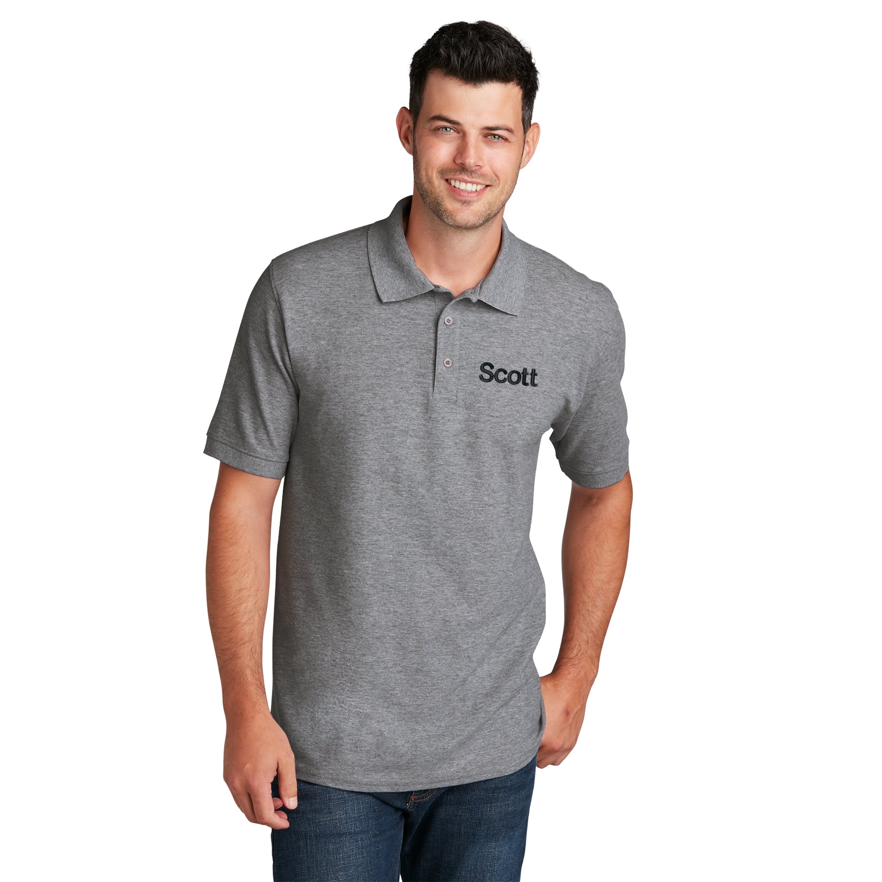 This Item includes: - Polo Shirt - Embroidered Name With a stain-release finish, this budget-minded polo is exceptionally durable. Features: - 6.5-ounce, 50/50 double pique knit cotton/poly - Stain-release finish - 1x1 rib knit collar and cuffs - Coverstitched shoulders, armholes and cuffs - 3-button placket with dyed-to-match buttons - Double-needle hem We do not accept returns on Embroidered items Please Choose Your Size Carefully